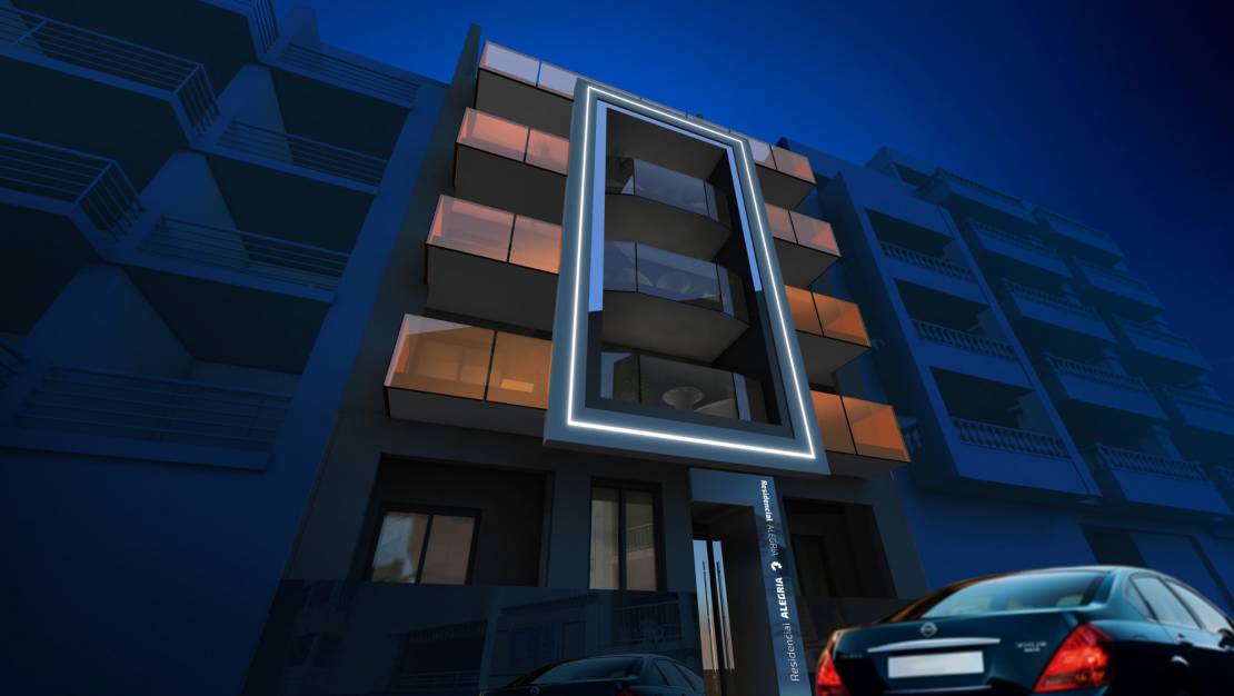 Apartamentos en planta alta con solarium en Torrevieja Costa Blanca Sur. El edificio consta de 5 plantas que consta de 13 apartamentos, piscina de agua salada, sauna, trastero y zona de bicicletas.