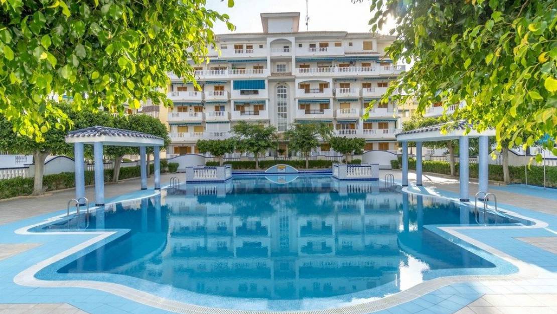 Apartamento en 2ª planta en el residencial Viñamar VI, en La Mata. Residencial se encuentra a tan solo 300 metros de la playa de arena, paseo marítimo y todos los servicios necesarios. El apartamento tiene 2 amplios dormitorios, un baño con ducha, cocina equipada y salón. Una amplia terraza con vistas a la piscina, orientada al sur. El apartamento se vende con muebles, A/A instalado. Residencial con piscina comunitaria y zonas verdes. Ideal para vacaciones, residencia permanente, inversiones.