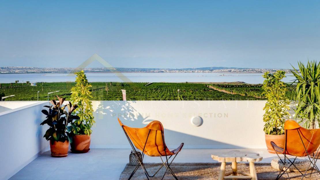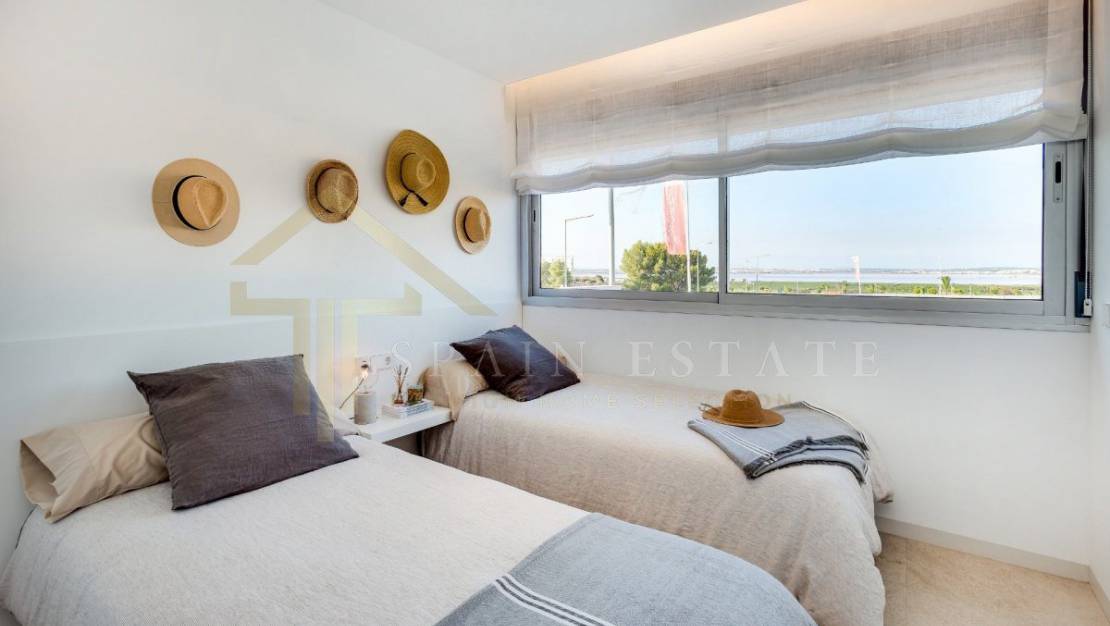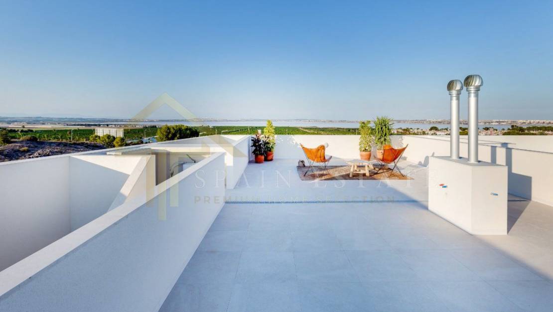 Casa en Torrevieja zona Los balcones, 72 m. de superficie, 18 m2 de terraza, una habitación doble y una habitación sencilla, 2 baños, propiedad seminueva, cocina sólo muebles, orientación sureste.