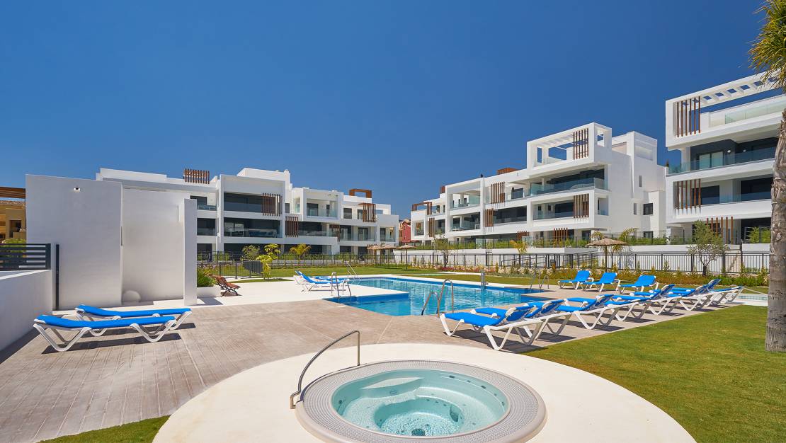 Ubicado a pocos pasos de la playa, a pocos minutos de Estepona y Puerto Banús, el residencial ofrece viviendas luminosas con grandes ventanales y una generosa superficie exterior en forma de terraza, porche o solárium. Sus áreas comunes incluyen una gran plaza central de más de 1000m2 con árboles y jardinería, piscinas, jacuzzis y zona de playa. Los niños se lo pasarán en grande en el área de juegos infantiles dentro del perímetro cercado que garantiza seguridad y tranquilidad. En el sótano tiene una plaza de aparcamiento y trastero, y aparcamiento común para bicicletas. La urbanización tiene acceso a una gama completa de servicios y entretenimiento que incluye numerosos campos de golf y el conocido Centro Comercial La Laguna.