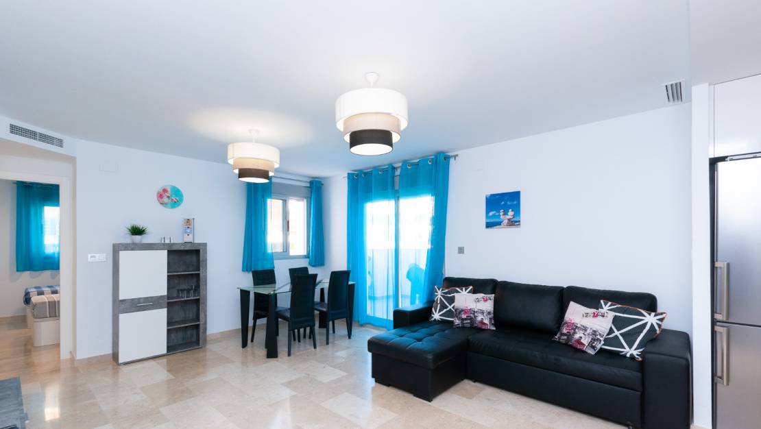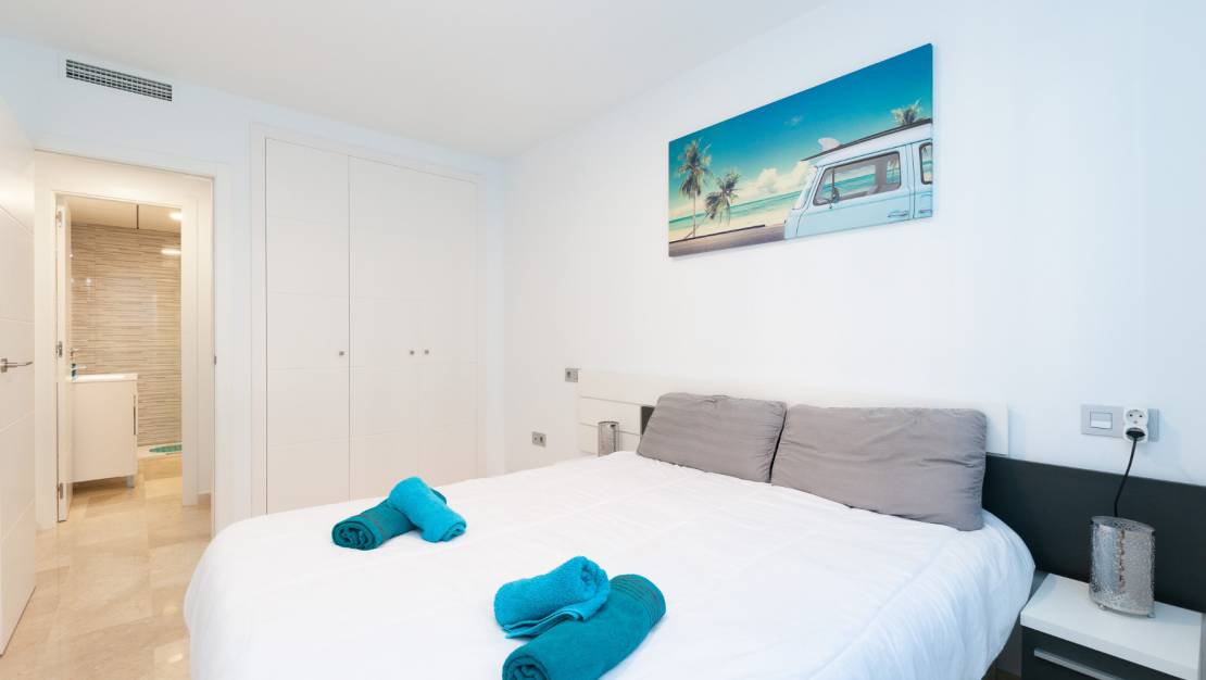 Se distribuye en amplio y luminoso salón con cocina americana, 2 dormitorios dobles, 1 baño (con ducha) y amplia terraza con vistas a la piscina. Este piso de obra nueva se alquila totalmente amueblado y equipado, listo para entrar a vivir.