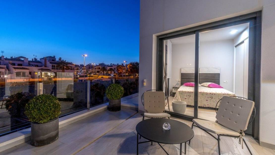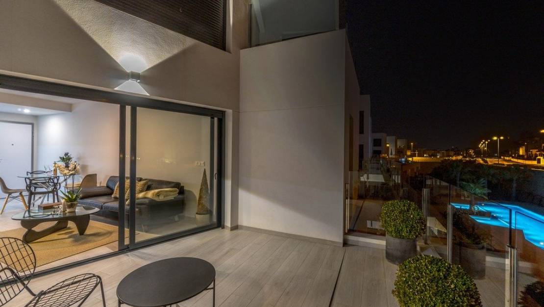 Nos complace presentar este hermoso y moderno apartamento de lujo, de nueva construcción con los más altos estándares, apenas usado solo unos meses, ubicado en Vilamartín, cerca de varios campos de golf y de todas las comodidades que pueda necesitar. El apartamento con un diseño moderno, luminosa sala de estar y la cocina, dos amplios dormitorios (m2 del mismo tamaño), con dos baños, de los cuales uno en suite, el dormitorio principal con una hermosa vista hacia la impresionante piscina y zonas verdes. Ambos cuartos de baño tienen sistema de calefacción por suelo radiante. El segundo dormitorio y el segundo baño nunca se han usado. La cocina está equipada con electrodomésticos de primeras marcas, Bosch [amp;] Electrolux, nunca usados, con garantía de 3 a 5 años. El apartamento tiene un amplio balcón (17,66m2) con una hermosa combinación de clinker blanco y vidrio, con una magnífica vista a la piscina y areas verdes. El apartamento está equipado con un sistema de domotica y un sistema de alarma muy avanzado con detectores de movimiento en todas las habitaciones y balcones. La propiedad tiene un espacio de estacionamiento subterráneo designado y un trastero muy espacioso. El apartamento está amueblado con muebles de diseño de primeras marcas, que están parcialmente incluidos en el precio de lista. Todo el paquete de muebles y muebles de diseño adicionales están disponibles bajo pedido. En los alrededores puede encontrar buenos restaurantes, cafeterías, supermercados y, a pocos minutos en coche, varios campos de golf como Vilamartin Golf, Las Ramblas Golf o Real Club de Golf Campoamor. En un corto trayecto en coche puede llegar a uno de los centros comerciales más grandes de la zona, La Zenia Boulevard o las hermosas playas de Orihuela Costa.