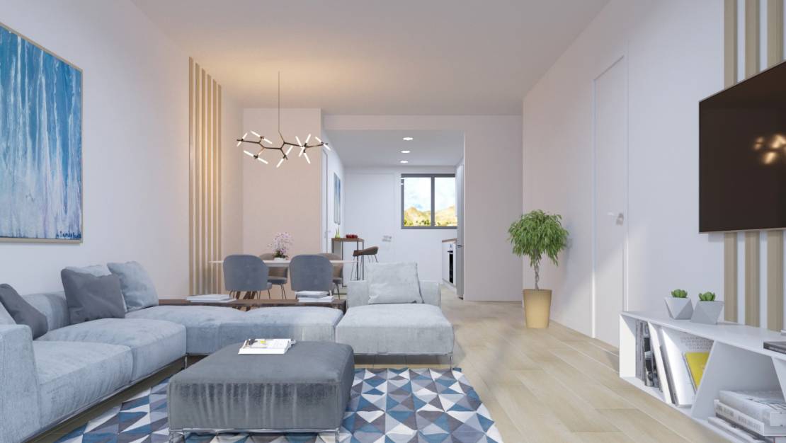 En este contexto, el proyecto combina vistas al mar, luz y un diseño especial basado en líneas rectas, acabados de colores brillantes, grandes ventanales ... El diseño agrega otros matices creativos diferenciados, como la opción de tener una piscina en la parte superior. piso solarium. O el juego de niveles basado en impresionantes muros de piedra natural.