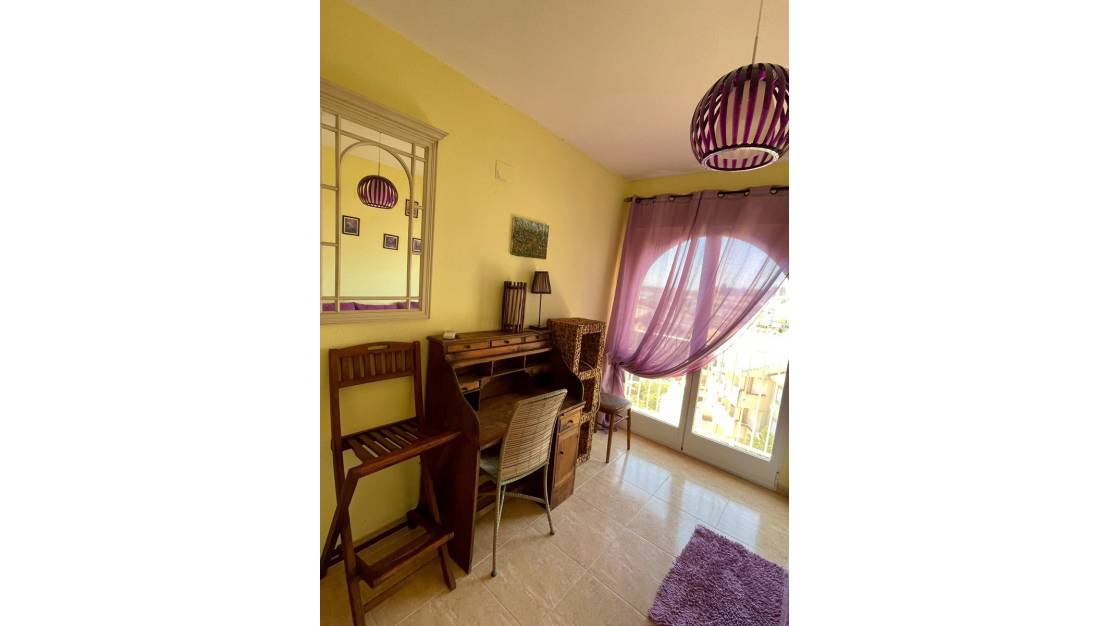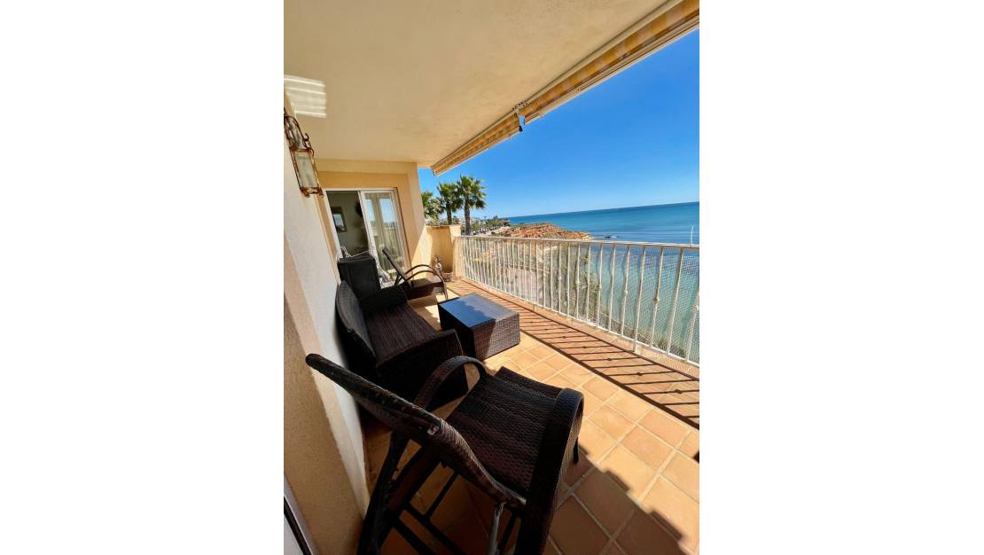 Precioso ático en alquiler larga temporada en primera línea con orientación sur-suroeste, muy luminoso, con vistas a la playa, mar, pinar y puerto. No hay nadie delante de él. La urbanización dispone de 3 bajadas individuales y privadas a 2 playas (Playa de la Glea y Playa de Aguamarina (CAMPOAMOR)), piscina comunitaria, zonas comunitarias con vistas. Aire acondicionado, 3 habitaciones dobles, 1 habitación doble, 1 habitación con baño, 2 baños, 1 cocina, 1 salón, 1 terraza, pasillo.