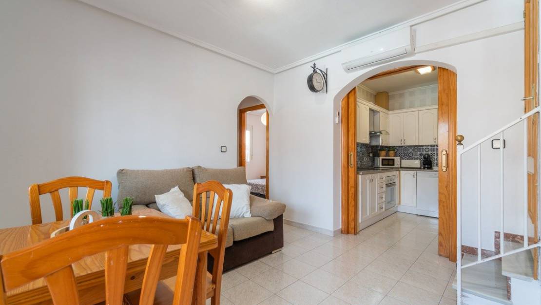 No pierda la oportunidad de alquiler esta estupenda vivienda. Apartamento situando en la zona de Los Altos en Torrevieja con una excelente ubicación , muy luminoso y a un paseo de la playa de Rocio del Mar. Este adosado está completamente reformado (2022) y equipado. Cuenta con un porche de entrada, salón-comedor con chimenea (cassette), cocina semi independiente, galería interior, tres dormitorios dobles y un baño. Urbanización privada con aparcamiento, jardines y piscina comunitarias. A un paso del centro comercial la Zenia Boulevard, cerca del colegio Romualdo Ballester. Precio: Junio: Segunda quincena : 800€ / Semana: 500€ Julio: Mes: 2400€ / Primera quincena: 1200€ / segunda Quincena: 1200€ / semana: 600€ Agosto: Mes: 2400€ / Primera quincena: 1500€ / segunda Quincena: 1500€ / semana: 700€ Larga temporada: Septiembre-Junio: Mes 600€. (min. septiembre - junio) Otros gastos: Fianza: 500€ Condiciones: No se aceptan mascotas. No se permiten fiestas Está prohibido fumar en el interior de la vivienda Máximo 6 adultos