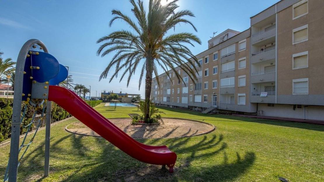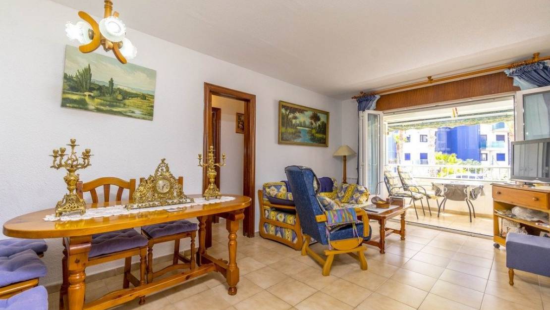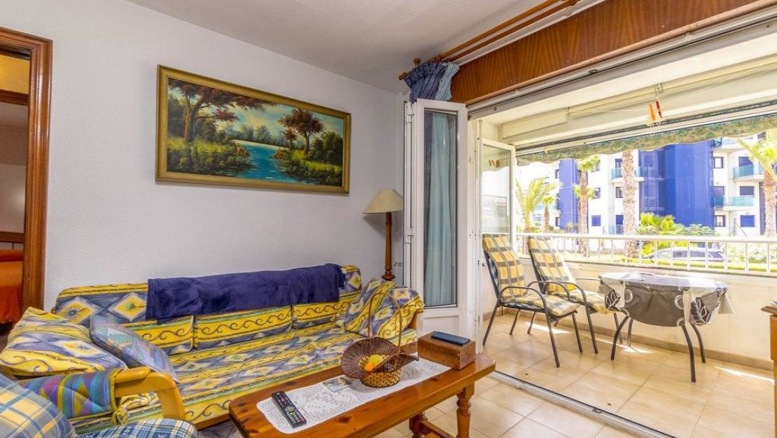 Apartamento en Punta Prima con vistas al mar situado a 50m de la playa. Amplia vivienda con superficie de aprox. 90m2, consta de 2 dormitorios y 1 baño, salón comedor, amplia cocina independiente, terraza con vistas al mar. Orientación sur. Se vende amueblado y equipado. Con trastero. Comunidad ofrece grande piscina comunitaria y zonas verdes. A 50m restaurante Nautilus y el paseo marítimo de Punta Prima.