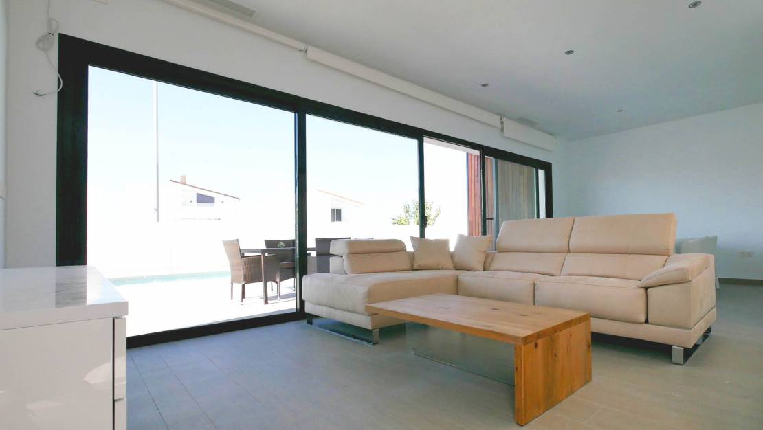 Es una villa de estilo moderno, que consta de una amplia sala de estar, 3 dormitorios, uno de ellos en suite, cocina abierta y 2 baños y un aseo.