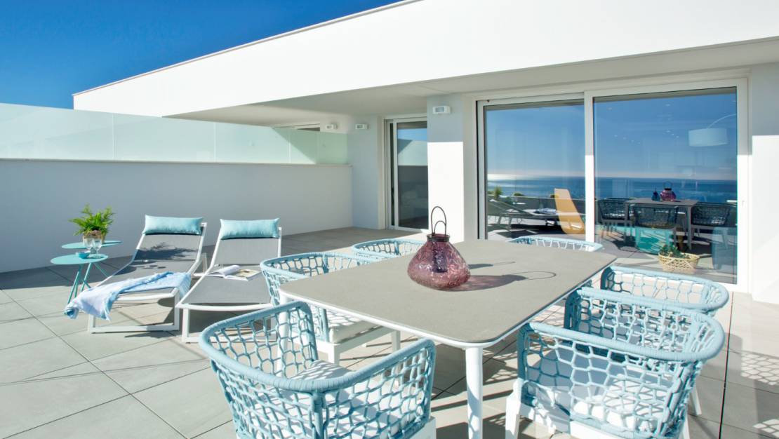 Apartamentos de lujo que destacan por sus dimensiones, todos de 3 dormitorios, con superficies de más de 240m² y terrazas de 40m², con distribuciones diseñadas para disfrutar de las vistas al mar, para tener habitaciones luminosas, detalles que logran un diseño moderno y elegante. Esto, junto con un equipo, tanto en materiales como en tecnología, orientado a lograr viviendas de alta eficiencia energética, los hace ideales tanto para vivir durante todo el año como para disfrutar de los períodos de vacaciones.