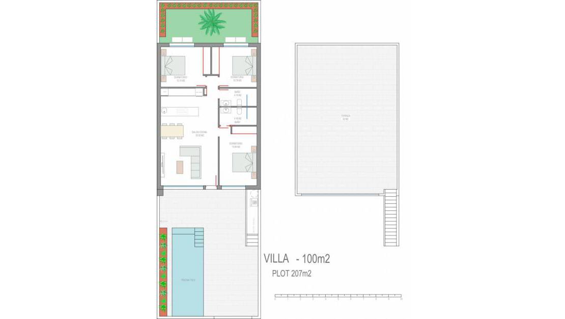 VILLA DE OBRA NUEVA EN SANTIAGO DE LA RIBERA~ ~ Preciosas villas de una sola planta con 3 dormitorios y 2 baños situados a 900 metros de las playas de Santiago De La Ribera. ~ ~ Todas villas tienen un luminoso salón con moderna cocina abierta y ventanas correderas que conectan con la terraza delantera y la piscina privada. ~ ~ Todos los dormitorios tienen armarios empotrados. ~ ~ También hay un gran solarium donde se puede tomar el sol todo el año, una plaza de aparcamiento privada en la parcela y el jardín.~ ~ ~ Situado en Santiago De La Ribera y a tan solo 900 m del mar es un lugar perfecto para disfrutar del fantástico clima con su precioso paseo marítimo.~ ~ Aquí encontrará todas las instalaciones a poca distancia, como muchos buenos restaurantes, grandes bares de tapas, cafeterías y supermercados. ~ ~ Los baños de barro gratuitos de Lo Pagan también están a poca distancia. Esta zona ofrece una variedad de actividades de deportes acuáticos y está a sólo 20 minutos de La Zenia Boulevard y la ciudad de Cartagena.~ ~ El aeropuerto de Murcia Corvera está a 30 minutos en coche. El aeropuerto de Alicante está a 50 minutos en coche.