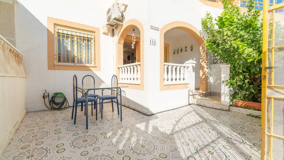 Planta baja en zona El limonar, está ubicada en la urbanización altos del Limonar, una de las zonas más solicitadas para vivir todo el año o como alquiler vacacional en Torrevieja por su cercania a todos los servicios, pero pudiendo a la vez disfrutar de la máxima tranquilidad y bienestar de vivir en una ciudad. A pocos metros de la vivienda se encuentran Supermercados (Consum y Mercadona ) centro comercial Habaneras y Carrefour, farmacias,centro deportivo etc.. También se encuentra la zona de ocio con restaurantes internacionales y cafeterias sin tener que ir en coche simplemente caminando o en bicicleta como se suele decir (tener todo a mano ). El parque natural de Torrevieja se encuentra a pocos metros de la urbanización tiene acceso a vías verdes para ir caminando o en bicicleta y poder disfrutar de las vistas de la zona y fauna y flora además de las famosas Salinas de Torrevieja. La vivienda consta de 54 m2 de superficie, construida, 2 habitaciones dobles, un baño, cocina independiente y un gran patio detrás, al lado de la cocina, y a la entrada de la vivienda un precioso jardin de 21 m2 con orientación Este para disfrutar del sol todo el año. La vivienda se entrega totalmente amueblada y con electrodomésticos. Gastos de comunidad: 240 Eur.Anual Ibi (suma) 132 € Anual