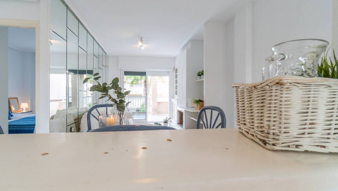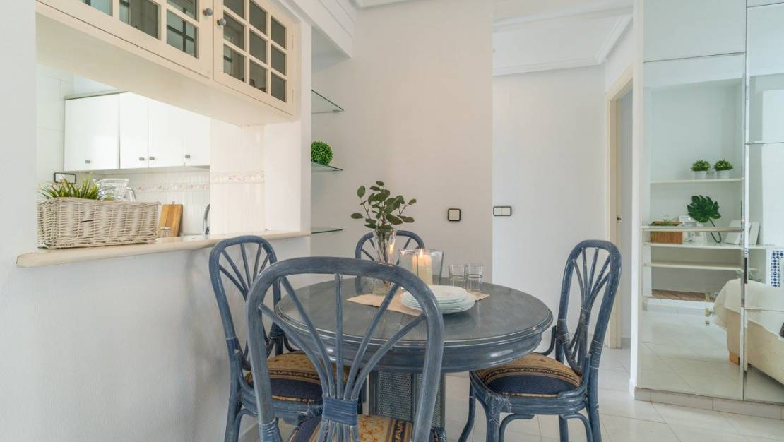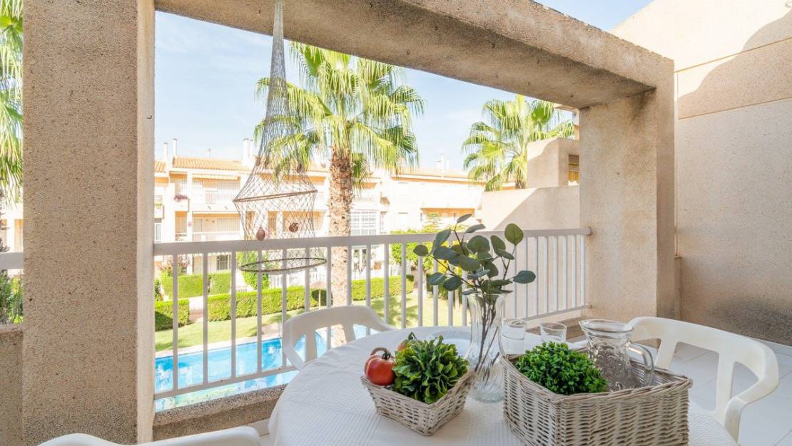 La vivienda se encuentra en una urbanización privada con preciosas zonas verdes y piscina comunitaria abierta todo el año. Cuenta con 58 m2 construidos y esta distribuida en un amplio salón comedor, cocina totalmente equipada, 2 habitaciones dobles, un baño y lo mejor de todo un amplio balcón de 14m2 con vistas a la piscina y a las zonas verdes.