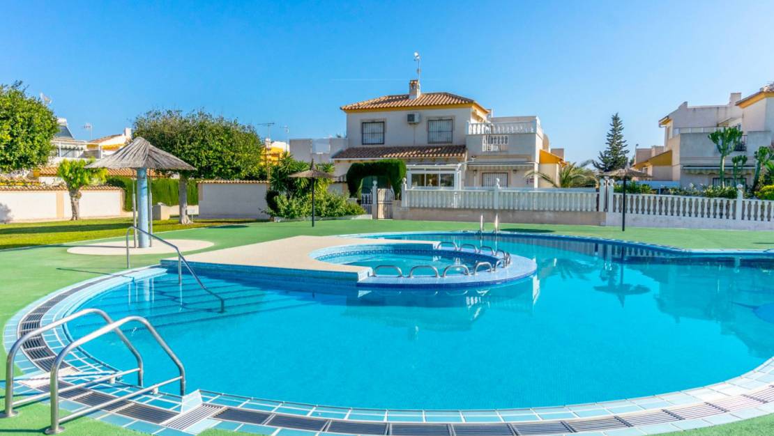 Adosado tipo quad, con su jardín y solarium, situado en la zona de Los Altos. La vivienda consta de 3 dormitorios con armarios empotrados, salón –cocina con la chimenea, 2 baños. Jardín de unos 30m2. La vivienda se vende amueblada y con electrodomésticos. La vivienda se encuentra en un entorno tranquilo de urbanización cerrada con piscina comunitaria rodeada de parques, colegios, restaurantes, Hospital Torrevieja, centro comercial La Zenia, playas en 5 min en coche.