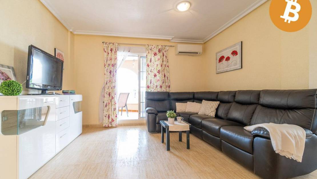 Este bonito apartamento ubicado en la Urbanización Lomas de Cabo Roig, en Zodiaco Beach fase IV, justo en la confluencia de los mejores campos de Golf de Orihuela Costa y con buenas comunicaciones con todos ellos y las playas de la zona, es la oportunidad ideal. Tanto las habitaciones como el salón son muy amplias y dan a la vivienda mucha posibilidad de que entre la luz, así como el sol durante todo el día debido a su orientación Suroeste. La ubicación del apartamento garantiza tener lo más destacable de la zona cerca: las playas de Cabo Roig y Campoamor, de los restaurantes más conocidos de la zona, con una parada de autobús muy cerca de la puerta del edificio que permite prescindir de tener vehículo propio y los centros comerciales y de ocio, con supermercados, farmacias, cajeros automáticos, bares y restaurantes donde comer y disfrutar de la gastronomía internacional: comida china, italiana, hindú, tapas, etc. Y si tiene hijos en edad escolar, la vivienda se encuentra a unos dos kilómetros del colegio internacional bilingüe El Limonar, con lo que pueden tener una educación de calidad a escasa distancia de su casa. La vivienda se encuentra situada en las cercanías del campo de Golf de Villamartin, pero también por ser la zona famosa por sus 3 otros campos de golf: el de Las Ramblas, el de Campoamor y el campo de Golf de las Colinas. También merece una visita el conocido mercado de Playa Flamenca que tiene lugar siempre los sábados, y mezclarse en la diversidad de nacionalidades (suecos, ingleses, alemanes, españoles, belgas, entre otros) que enriquece nuestra costa. Además de todo ello, tiene muy fácil acceso fácil a Torrevieja, Alicante, Murcia, Cartagena desde la AP-7, N332, con conexión directa con los aeropuertos de Alicante (ca. 40 Km) y Murcia (ca. 40 Km). En la calle hay aparcamiento de sobra para los propietarios, espacios abiertos y bien conservados. El vecindario y la zona es tranquila y amistosa, cuenta con piscina y jardines comunitarios abiertos todo el año y donde se puede disfrutar del sol y las actividades familiares todos los días del año. El apartamento está situado en la planta primera por lo que no es necesario el cuidado de los jardines de las plantas bajas y no está tan alto como para necesitar ascensor para acceder al mismo, y cuenta con un hermoso salón-comedor, una cocina americana amplia y abierta para permitirle socializar con sus invitados mientras cocina, un buen balcón cubierto para poder estar al aire libre a la vez que dentro de su vivienda, y dos dormitorios amplios con armarios empotrados y un cuarto de baño completo. La vivienda está en perfectas condiciones, y completamente amueblada, con lo que está lista para entrar a vivir de forma inmediata y puede convertirse en una vivienda perfecta para vivir todo el año con su familia o para obtener un rendimiento arrendándola.