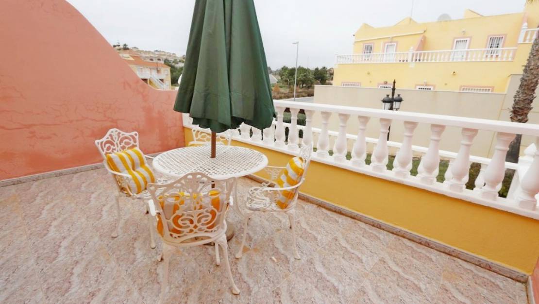 Bonito duplex ubicado en la Urb. Bosque de las lomas. La casa tiene 3 dormitorios y 2 baños (un dormitorio en la planta baja). Cocina independiente y patio trasero. Amplio salón, porche de unos 8m2, otra terraza en el primer piso. Exterior. Orientación sur. Zona con todos los servicios disponibles durante todo el año, cerca de la playa y de los servicios de restaurantes y bares a su alcance, siendo esta una urbanización muy tranquila, segura y bien conservada con jardines y piscina comunitaria para disfrutar todo el año.