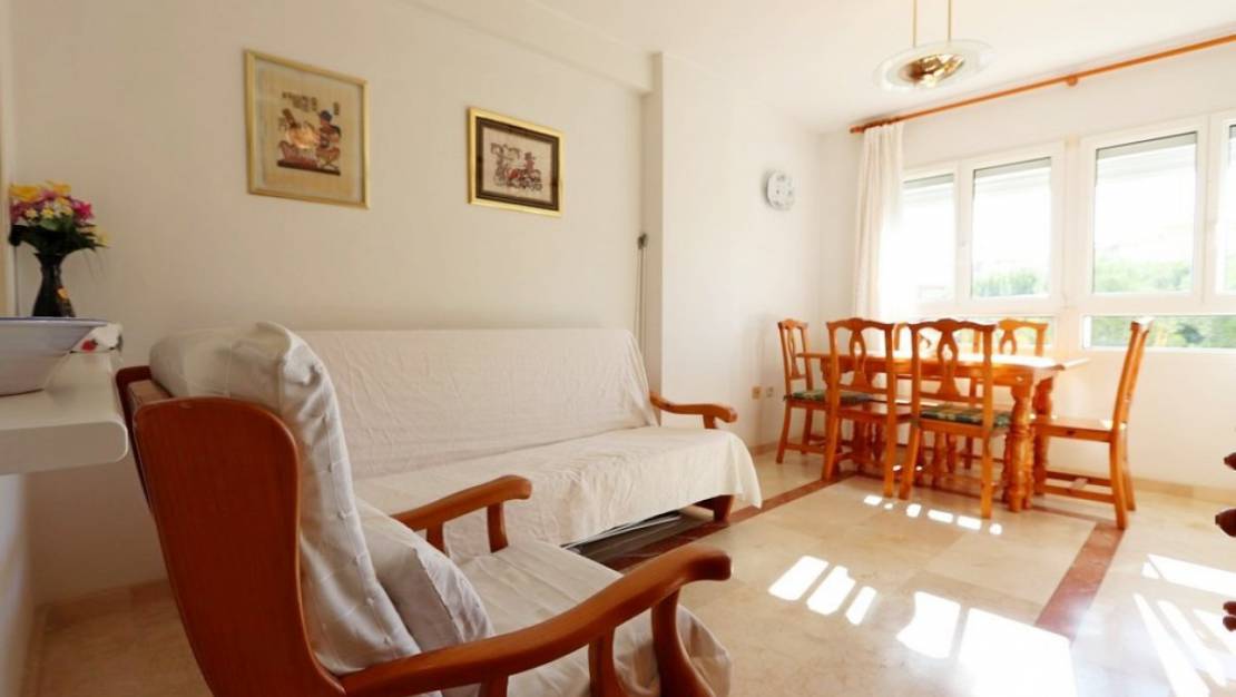 Apartamento en planta 2 en la Urbanización Altos de Campoamor. Consta de dos habitaciones (ambas con vistas al mar) un baño, cocina americana y terraza con vistas al mar. En venta amueblado y equipado. Urbanización equipada con piscina, zonas verdes y pistas deportivas. A tan solo 900 metros de la playa y del puerto deportivo. Ideal para vacaciones o inversión para alquilar.