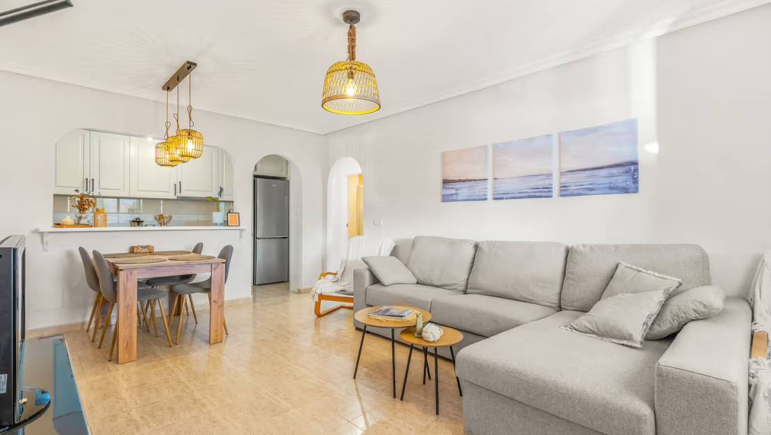 Este elegante apartamento se encuentra en la prestigiosa urbanización Zeniamar IV, en la zona de Los Altos, Orihuela Costa. La propiedad ofrece una superficie construida de 80 m² sobre una parcela de 49 m², distribuidos en dos dormitorios y dos baños, proporcionando espacios amplios y confortables para una vida placentera. La vivienda se entrega totalmente amueblada y lista para entrar a vivir. Su orientación este garantiza una excelente iluminación natural durante las mañanas, creando un ambiente acogedor en todas las estancias. Como valor añadido, la propiedad dispone de una licencia turística, lo que la convierte en una excelente oportunidad tanto para residencia como para inversión en alquiler vacacional. La urbanización Zeniamar IV destaca por sus amplias zonas ajardinadas y una piscina comunitaria, ofreciendo a los residentes un entorno tranquilo y relajante. Además, se trata de una urbanización cerrada, lo que proporciona un extra de seguridad y privacidad. Ubicada a aproximadamente 1,5 km del mar, la propiedad permite un acceso rápido a las hermosas playas de Orihuela Costa. La zona de Los Altos es conocida por su amplia oferta de servicios y comodidades, incluyendo supermercados, restaurantes y centros comerciales. Su excelente infraestructura y conexiones de transporte facilitan el acceso a otras áreas de interés en la Costa Blanca, convirtiendo esta vivienda en una opción ideal tanto para residencia permanente como para inversión vacacional.