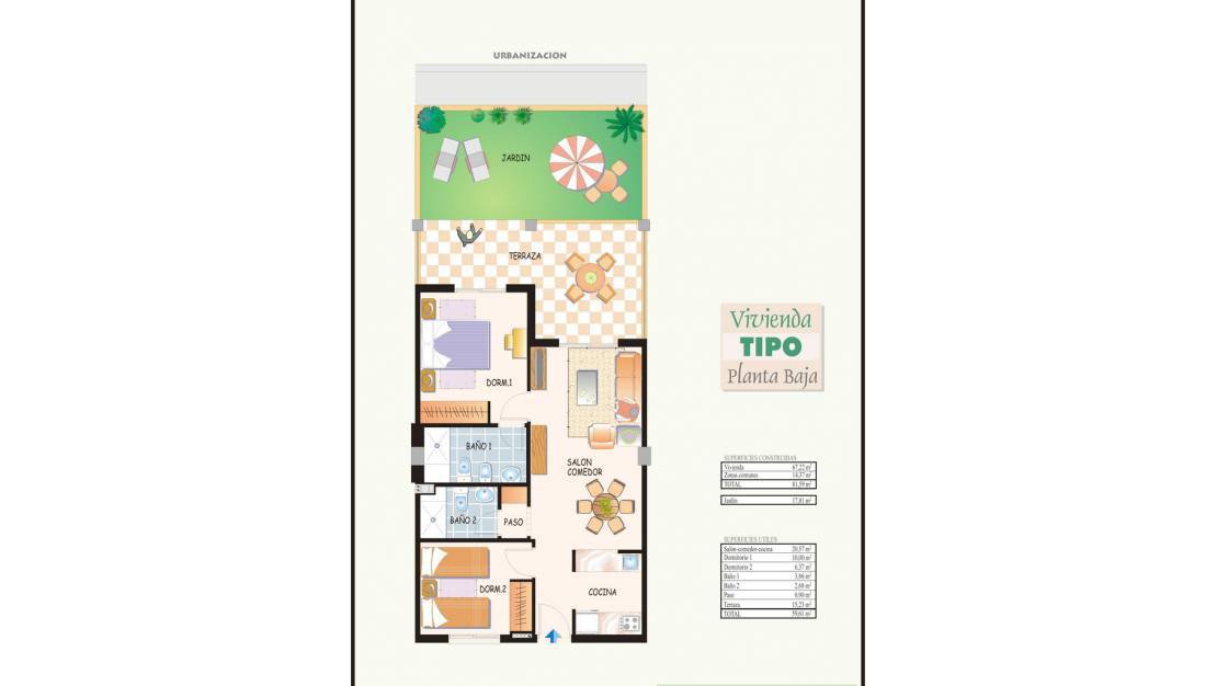 Los apartamentos son de 81,59 m2 construidos, distribuidos en 2 dormitorios y 2 baños.