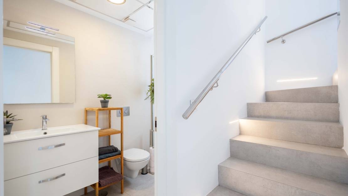 El salón diáfano con amplios ventanales se integra a la perfección con una cocina moderna y funcional , creando el espacio perfecto para disfrutar con la familia o los amigos. En la planta baja, hay un aseo de invitados y un dormitorio con baño en suite.