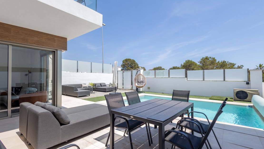Descubra esta impresionante villa moderna en Villamartín, una de las zonas más exclusivas de Torrevieja. Esta espectacular casa de 178 m² fue diseñada para quienes buscan elegancia y comodidad. Cuenta con cuatro amplios dormitorios , cada uno con baño en suite , tres de ellos con vestidores en la primera planta, lo que ofrece privacidad y comodidad en cada rincón.