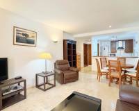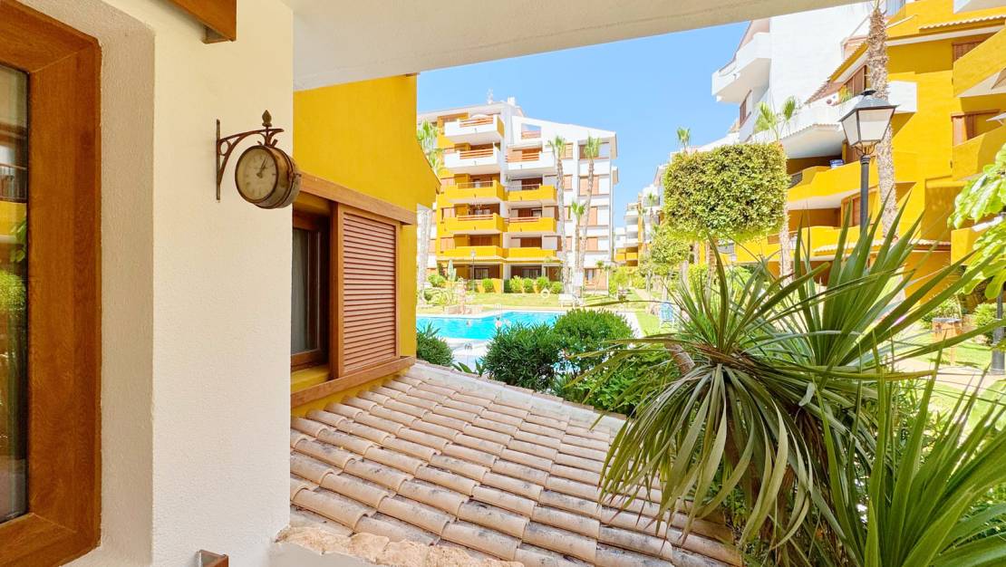 La vivienda cuenta con una superficie construida de 80 m², distribuidos en: 2 dormitorios dobles con armarios empotrados 2 baños completos, uno de ellos en suite Salón-comedor amplio y luminoso Cocina independiente completamente equipada Terraza privada de 15 m², con orientación ideal para disfrutar de luz natural Ubicada en un entorno residencial cerrado, la urbanización ofrece: 2 piscinas comunitarias Zonas ajardinadas de uso común Accesos peatonales y vigilancia La propiedad se encuentra en perfecto estado de conservación y es apta tanto para uso residencial como inversión turística, gracias a su cercanía al mar y a todos los servicios (restaurantes, comercios, transporte público).