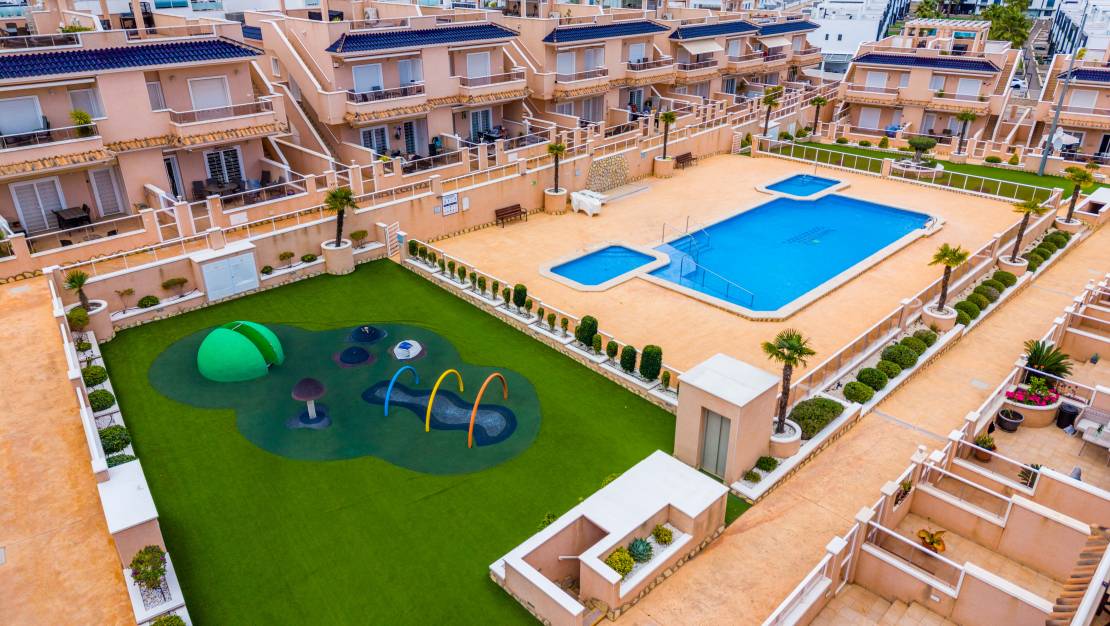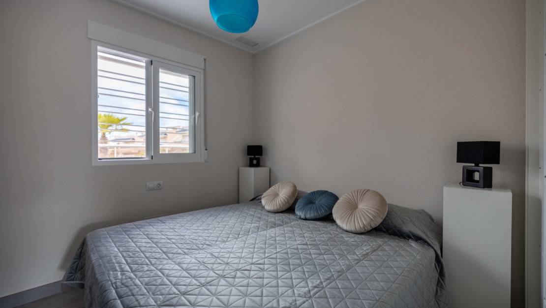 Todo lo que necesitas está a poca distancia : supermercados, farmacias, restaurantes y la zona comercial de Punta Marina. La playa de Punta Prima se encuentra a un corto paseo. El centro comercial Zenia Boulevard está a solo 10 minutos en coche, al igual que varios campos de golf de renombre.
