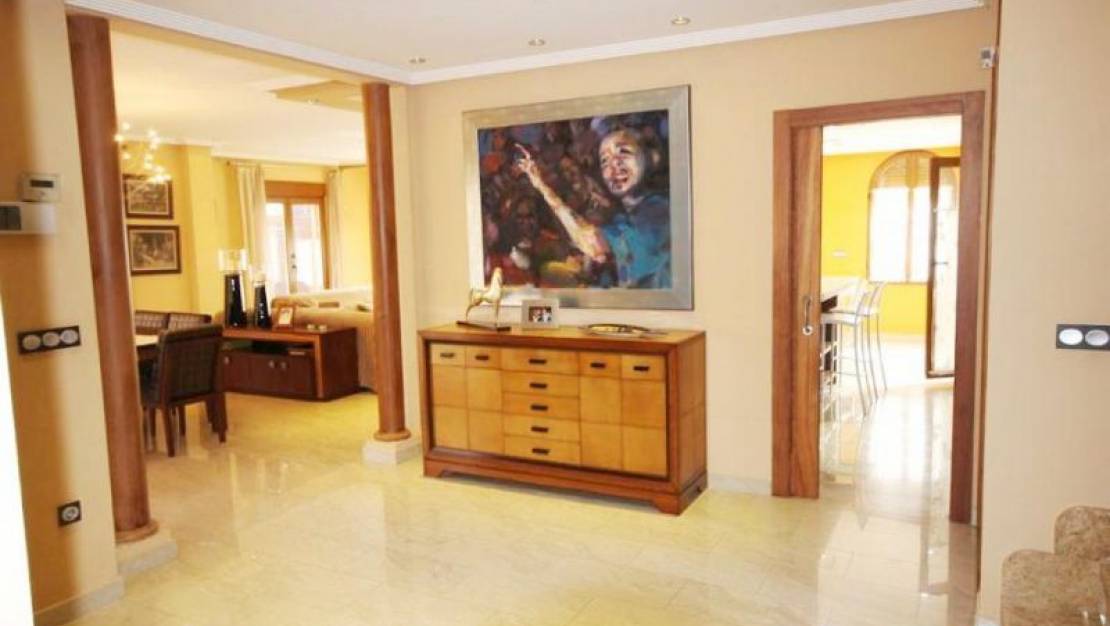 Belle villa indépendante avec orientation est située dans le centre urbain de La Aparecida. La maison de 620m2 construite sur un terrain de 425m2 se compose de 3 chambres à coucher, 3 salles de bain, 2 salons (dont l’un de 48m2), cuisine indépendante avec îlot, plusieurs terrasses d’une superficie totale de 104,5m2, 2 caves (301m2) avec système de ventilation, gymnase avec sauna aromathérapie, ascenseur avec arrêt du sous-sol, cuisine, salon et 1er étage, cave et de nombreux autres extras qui méritent une visite personnelle pour apprécier tous ses détails et services. La propriété dispose du chauffage au sol et de la climatisation avec télécommande dans chacune des chambres. Menuiserie intérieure en bois tropical, porte d'entrée à double blindage et placage de bois gravé. Installation de fil musical. 35 km de l'aéroport de San Javier et 30 km des plages. IL N'Y A PAS DE FRAIS COMMUNAUTAIRES. Somme 1000 euros / an.