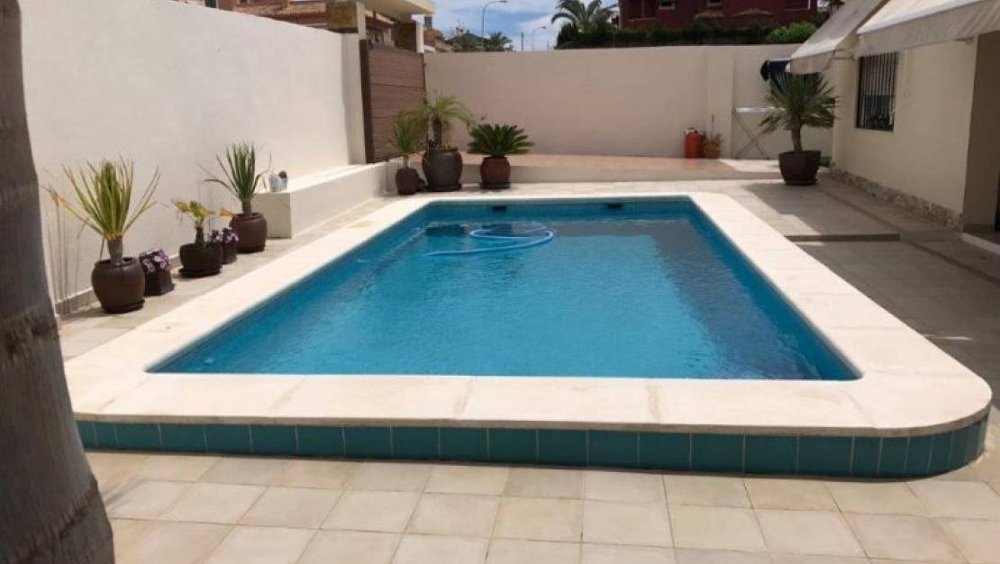Jolie villa indépendante en plain-pied, orientée Nord-Est, située dans l'urbanisation Aguas Nuevas et construite sur un terrain de 412 m2. , elle se compose de trois chambres à coucher, salon - salle à manger, cuisine indépendante équipée, deux salles de bains. Air conditionné. Les zones extérieures posssédent un jardin avec porche couvert, piscine privée, sauna finlandais, barbecue. La maison est vendue meublée. Un très bon et calme quartier, à côté de tous les services. Taxe 605 € / an