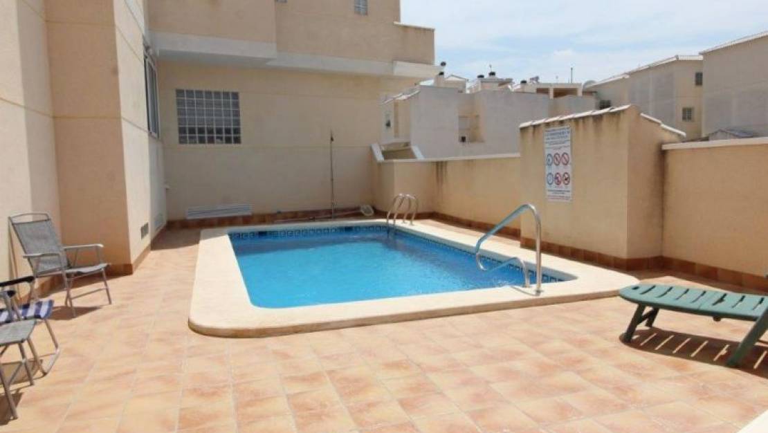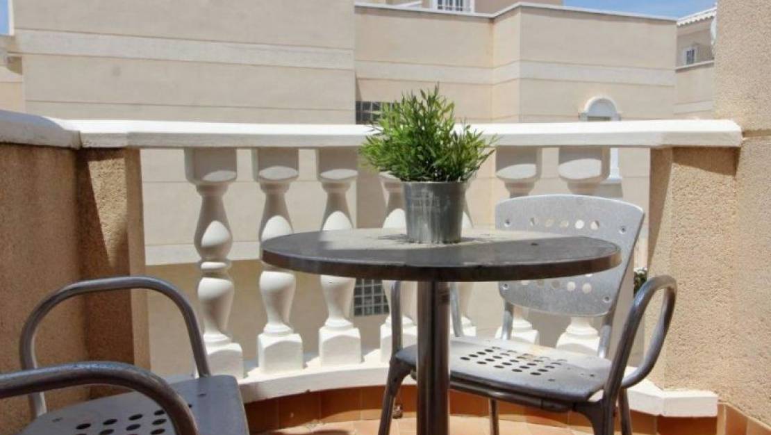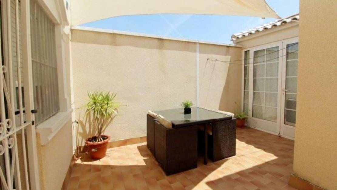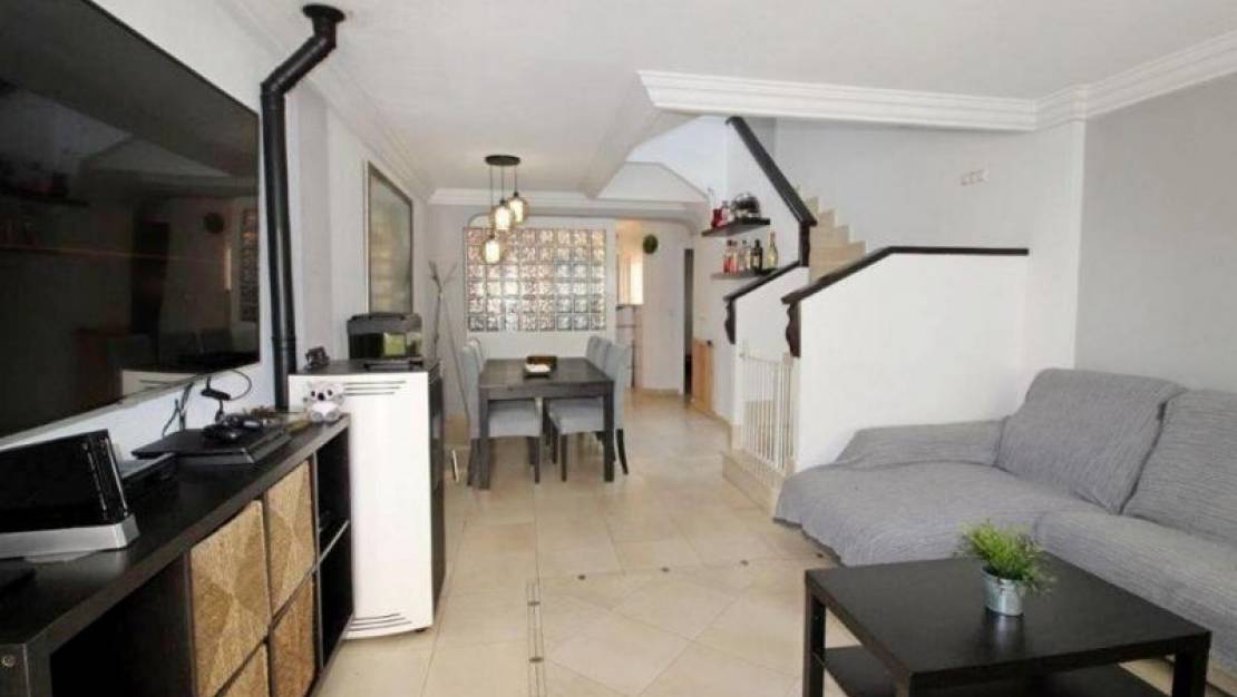 Belle maison de ville spacieuse avec trois chambres à coucher, deux salles de bain et une toilette. Surface construite 200 m2 et 148 m2 utiles. Distribution: Sous-sol: grand garage, débarras et petit salon. Rez-de-chaussée: petite terrasse, salon avec cuisinière, toilette, cuisine, terrasse et buanderie. A l'étage: deux chambres, la principale avec balcon et climatisation et deux salles de bains, au deuxième étage: une pièce pouvant également servir de bureau et de solarium. Piscine communautaire, quartier calme avec tous les services et proche des routes principales. Juste dix minutes de la plage. Somme: 366 € / an, Communauté 140 € / trimestre