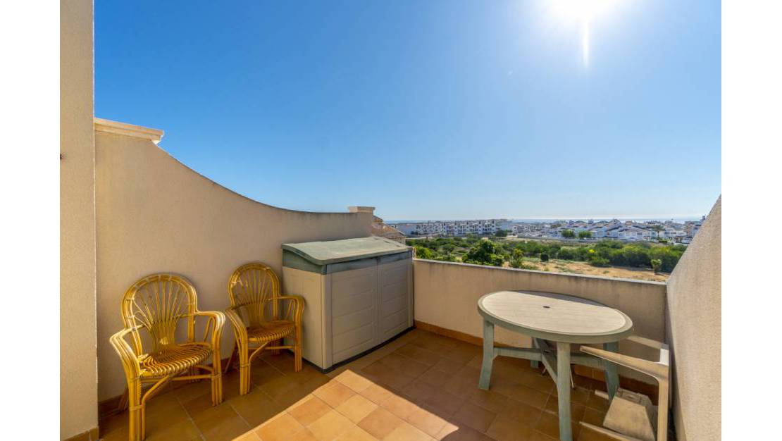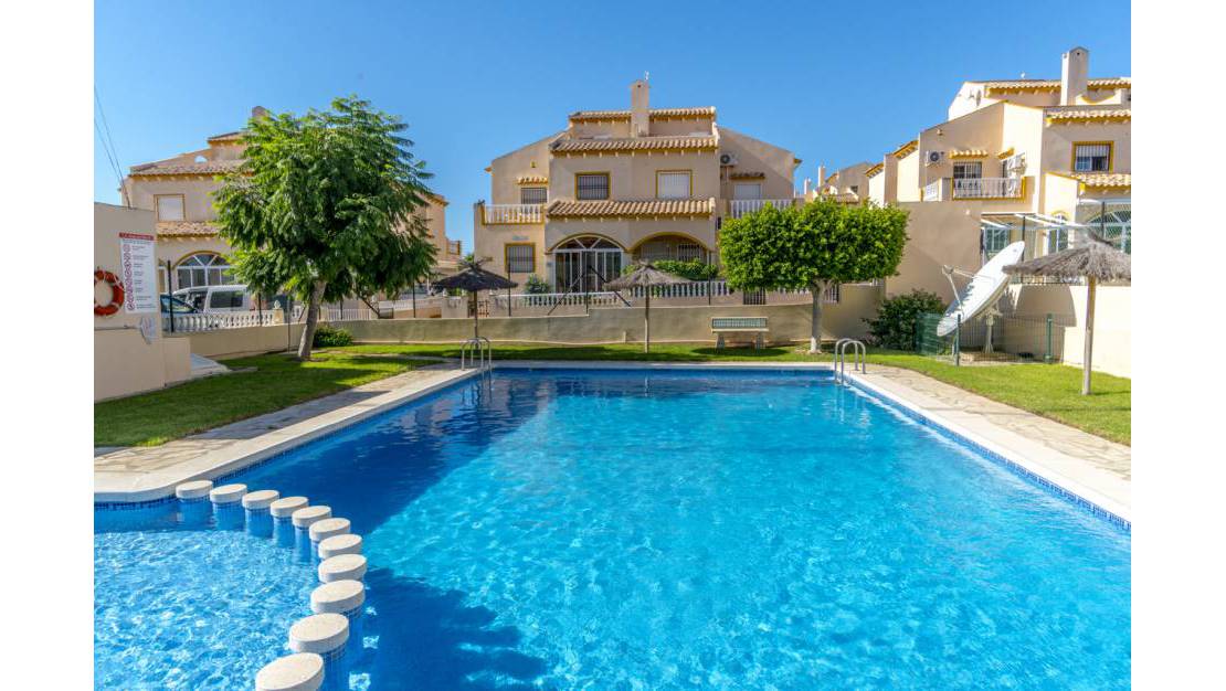 Maison de ville ensoleillée à Los Altos, Orihuela Costa. La propriété est divisée en 2 étages. Au premier étage, vous trouverez une petite terrasse vitrée pour profiter du soleil grâce à son orientation sud-est. A l'intérieur, vous trouverez un grand salon avec des meubles traditionnels et en excellent état, il dispose également d'une salle de bains et une cuisine séparée avec une petite galerie. Au premier étage il ya 2 chambres, l'une d'entre elles avec terrasse de 6 m2 avec vue sur la ville et la mer. Il ya aussi une salle de bains complète et l'escalier vers le solarium de 21 m2 avec vue ouverte. Il dispose également d'un parking extérieur sur la propriété et la piscine commune.rnrnLos Altos est situé à quelques minutes de la prestigieuse urbanisation de Punta Prima où vous pourrez profiter de sa plage de drapeau bleu, ainsi que les plages de Playa Flamenca, La Zenia, Cabo Roig et Campoamor qui sont à quelques minutes en voiture, c'est une zone avec résidents toute l'année, il a donc tous les services. Près des centres commerciaux de Punta Marina et La Zenia Boulevard où vous pouvez trouver une variété de magasins et de restaurants. Vous pouvez également profiter d'une grande concentration de terrains de golf dans ses environs tels que Villamarton, Las Ramblas, Campoamor et Las Colinas, ainsi que les ports et les centres sportifs d'Orihuela Costa et Torrevieja. Grâce à la nationale 332 ou l'autoroute AP-7, nous pouvons facilement atteindre n'importe où sur la Costa Blanca. Nous avons l'hôpital de Torrevieja en seulement trois kilomètres et en 30 minutes, vous pouvez atteindre les aéroports d'Alicante ou Murcie.