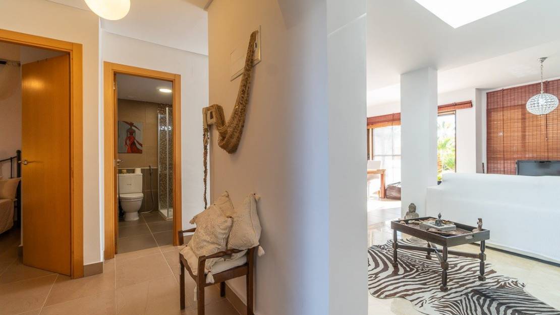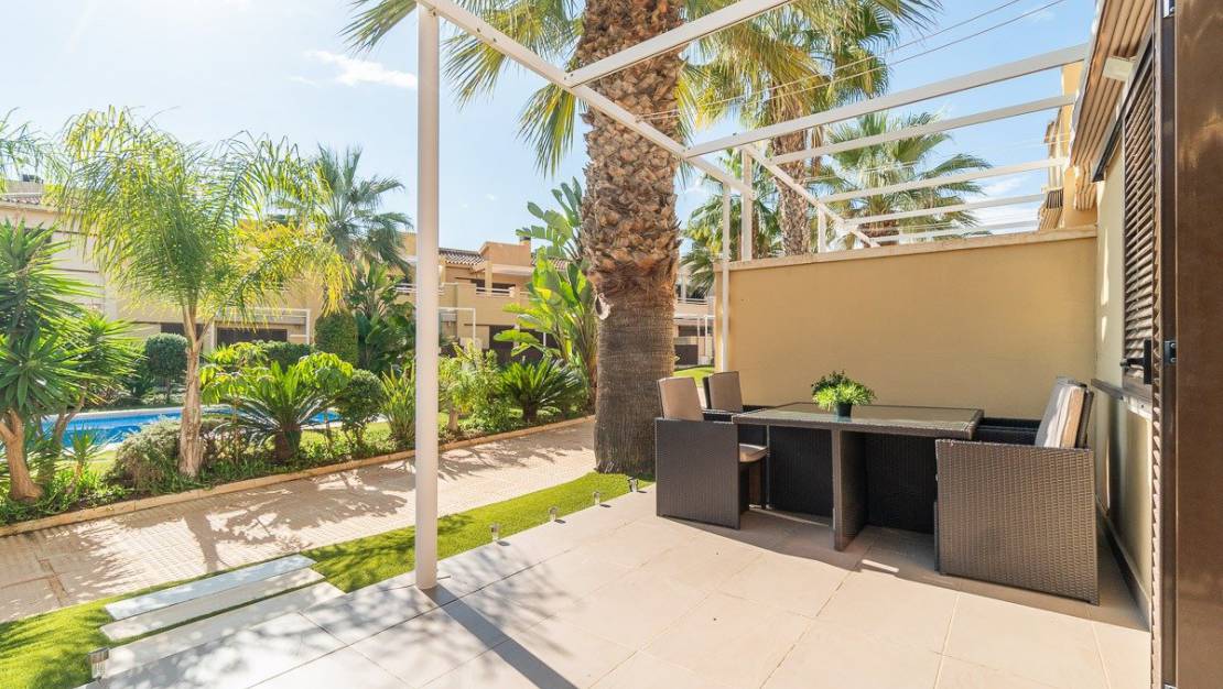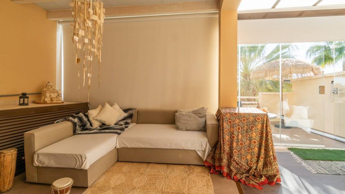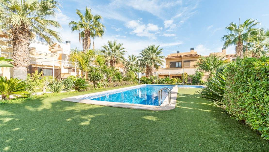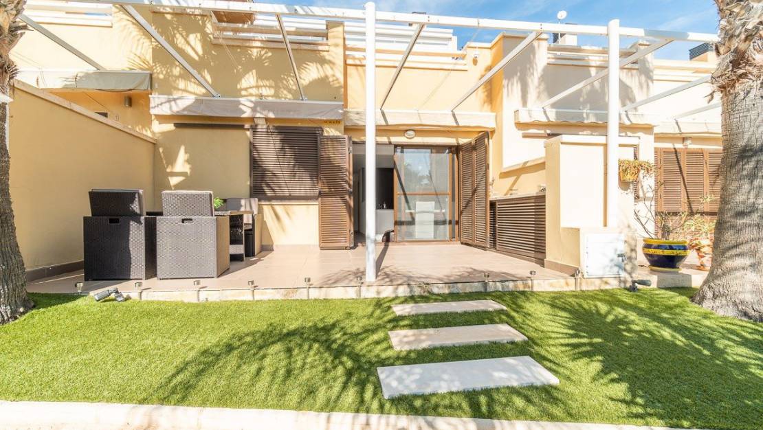 Belle maison de ville dans le quartier de Las Lomas de Cabo Roig, dans le quartier résidentiel de La Dehesa, grâce à son orientation sud elle a le privilège d'un bon éclairage tout au long de l'année, elle profite d'un hiver chaud et confortable, elle est située dans l'une des urbanisations les plus beaux espaces verts d'Orihuela Costa. La maison est très proche des terrains de golf Campoamor et Villamartín, à environ 800 mètres de la mer, ainsi que des centres commerciaux de la région, vous pouvez trouver des restaurants, des cafés de plusieurs nationalités différentes et avec une variété de supermarchés, en plus du centre Médecin Orihuela Costa. Le style de la maison a un grand dévouement pour que les couleurs, les meubles et les éléments décoratifs créent une maison unique, se différenciant du reste. Il est réparti sur deux étages de 82 m2 construits et 64 m2 de terrasse qui en fait partie totalement clos avec le meilleur aluminium et profitant toujours de la lumière toute l'année, il dispose également d'une détente relaxante en détail. une chambre et une salle de bain. Au rez-de-chaussée, dès que nous entrons, nous avons un jardin avec une entrée pour le véhicule d'environ 30m2 et en entrant dans la maison, nous pouvons trouver un grand salon avec lumière naturelle au plafond et sortie sur la piscine communautaire et les espaces verts avec un porche d'environ 20m2, kitchenette, salle de bain et chambre double. Entre partiellement dans les meubles et appareils électroménagers, n'entre pas dans la décoration. C'est l'occasion de réaliser votre rêve, venez me rendre visite !! somme (ibi) 278 Communauté 574 Annuel