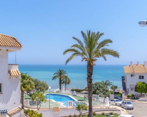 Campoamor est une urbanisation d'Orihuela Costa qui se caractérise par la zone résidentielle de villas indépendantes à quelques mètres des plages. A un pas de Cabo Roig, Mil Palmeras et La Zenia, à proximité de tous les services et du célèbre centre commercial La Zenia Boulevard. A quelques minutes de Pilar de La Horadada, San Pedro del Pinatar et Torrevieja, ainsi que les terrains de golf de Villamartin, Las Ramblas, Campoamor et Las Colinas.rnrnRésidentiel exclusif avec plusieurs piscines communes, extérieur et un intérieur chauffé, grands jardins, salle de gym, aire de jeux et chill out zone.rnrnAppartement moderne avec vue sur la mer depuis la terrasse de 12m2. La maison à l'intérieur dispose d'un salon et d'une cuisine avec bar de petit déjeuner équipé. Il dispose également de 2 chambres et 2 salles de bains (une suite).