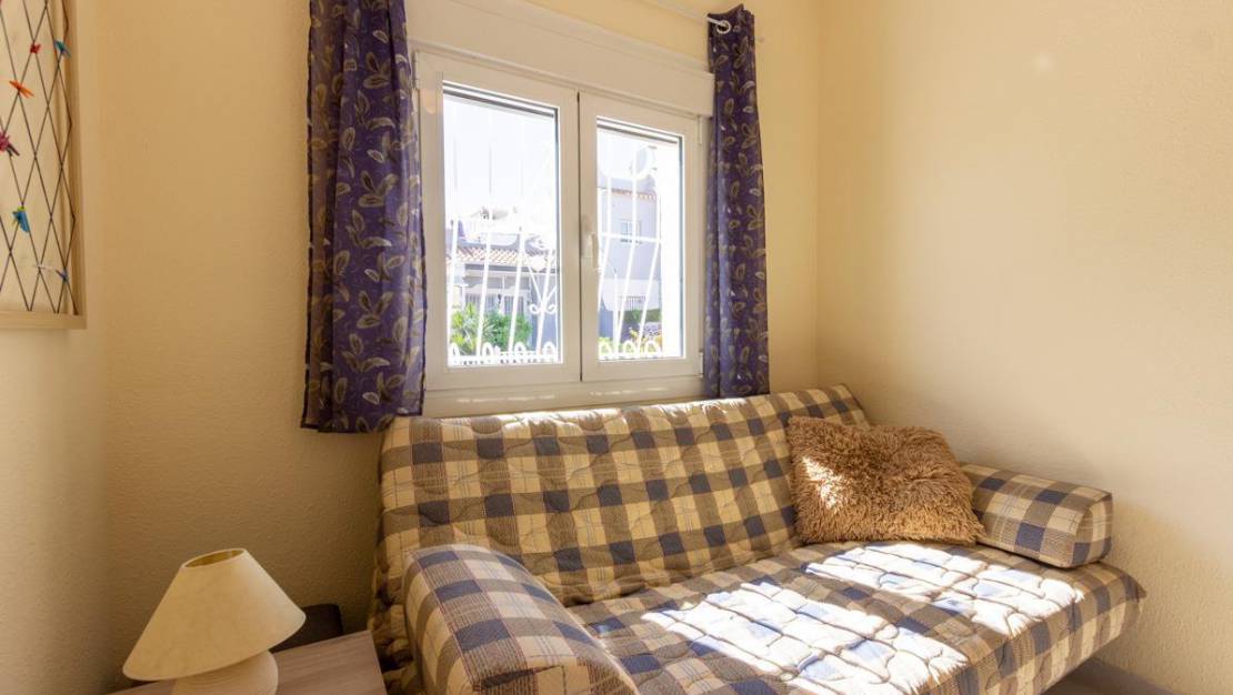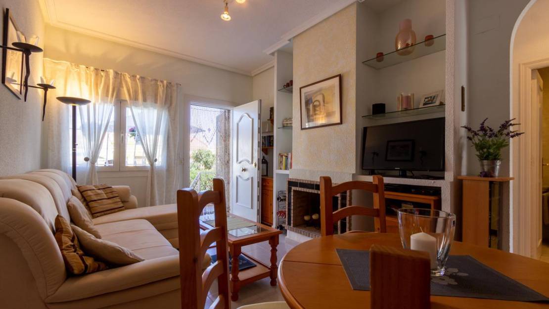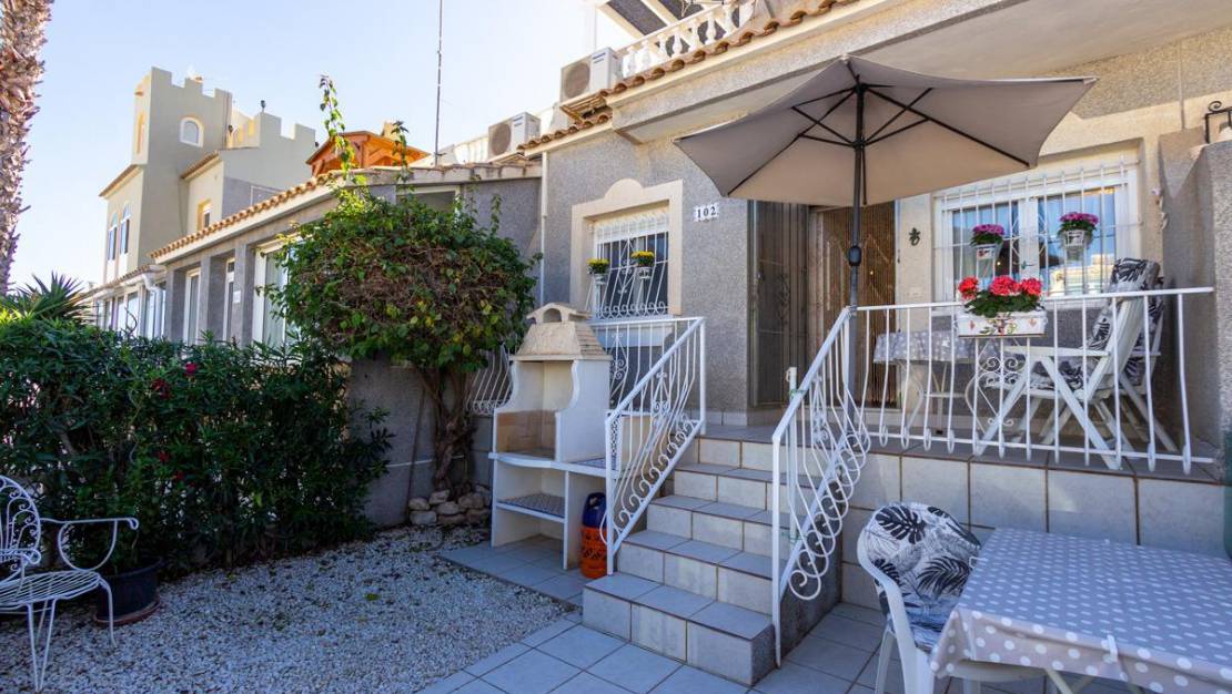 Découvrez votre oasis en bord de mer dans cette charmante maison de ville située dans le quartier recherché de La Florida, à Orihuela Costa. Bénéficiant d'un emplacement privilégié à seulement 2 935 mètres des plages dorées de la Méditerranée, cette propriété de 55 mètres carrés vous offre la possibilité de vivre la vie côtière dont vous avez toujours rêvé. Tout est de plain-pied. Dès l'entrée, vous serez surpris par la luminosité qui inonde chaque coin grâce à l'aluminium extérieur et aux fenêtres à double vitrage. Le sol en grès de haute qualité apporte fraîcheur et élégance à chaque pas. Deux chambres doubles avec armoires encastrées offrent une retraite confortable, tandis que la salle de bains étincelante vous invite à vous détendre après une journée au soleil. La propriété est prête à être emménagée, chaque détail ayant été soigneusement entretenu. La climatisation assure un climat parfait tout au long de l'année, tandis que la cheminée du salon crée une atmosphère chaleureuse lors des soirées plus fraîches. Mais ce qui distingue vraiment cette propriété, c'est son spacieux jardin de 25 mètres carrés, idéal pour les repas en plein air et les barbecues entre amis. Le balcon et la terrasse offrent une vue imprenable sur la mer. Il y a également un garde-manger et une salle de stockage pour tout garder en ordre. La communauté fermée offre la sécurité et l'accès à des aires de jeux pour enfants et à des parcs, ce qui est idéal pour les familles. En outre, vous serez à proximité de terrains de golf, d'hôpitaux, de supermarchés et de toutes les commodités dont vous avez besoin.