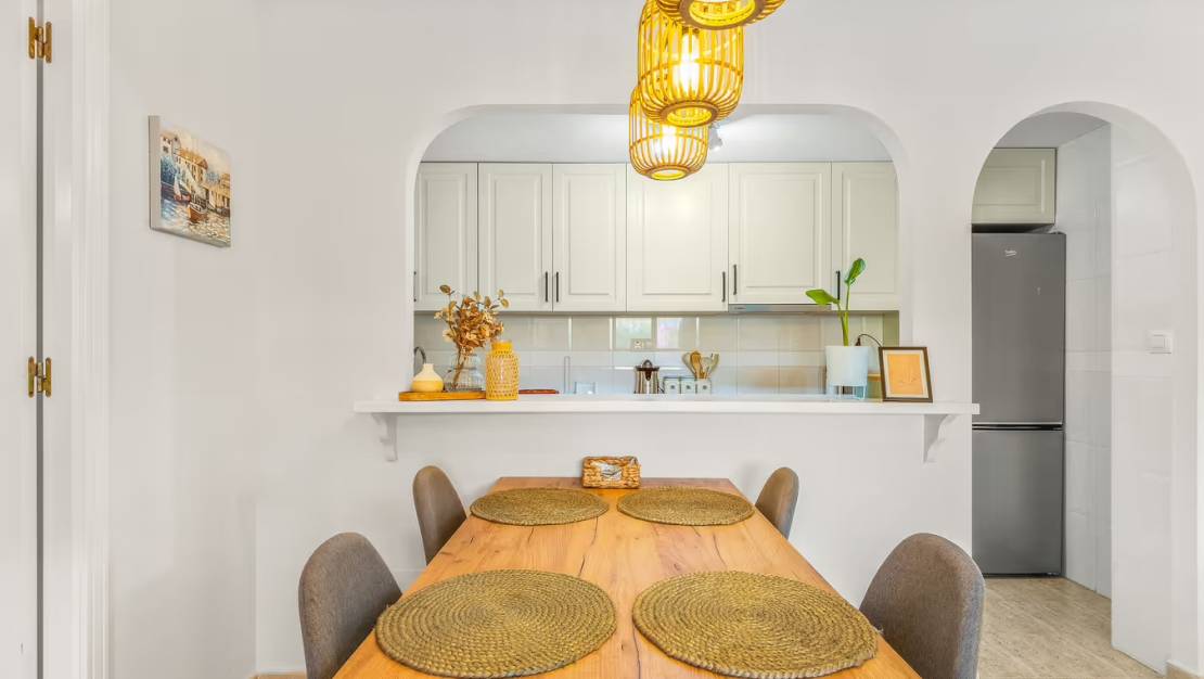 Cet élégant appartement est situé dans la prestigieuse résidence Zeniamar IV, à Los Altos, Orihuela Costa. La propriété offre une surface construite de 80 m² sur une parcelle de 49 m², comprenant deux chambres et deux salles de bains, offrant des espaces de vie spacieux et confortables. L’appartement est entièrement meublé et prêt à être habité. Son orientation est assure une excellente luminosité naturelle le matin, créant une atmosphère chaleureuse et accueillante dans toutes les pièces. En plus, la propriété dispose d’une licence touristique, ce qui en fait une excellente opportunité aussi bien pour une résidence principale que pour un investissement locatif saisonnier. La résidence Zeniamar IV se distingue par ses grands espaces verts et une piscine commune, offrant un cadre paisible et relaxant à ses résidents. De plus, il s’agit d’une résidence sécurisée, garantissant tranquillité et intimité. Situé à environ 1,5 km de la mer, cet appartement permet un accès rapide aux magnifiques plages d’Orihuela Costa. Le quartier de Los Altos est réputé pour son large éventail de services et commodités, notamment des supermarchés, des restaurants et des centres commerciaux. Son excellente infrastructure et ses connexions de transport permettent un accès facile aux autres zones clés de la Costa Blanca, en faisant un choix idéal tant pour une résidence principale que pour un investissement locatif.
