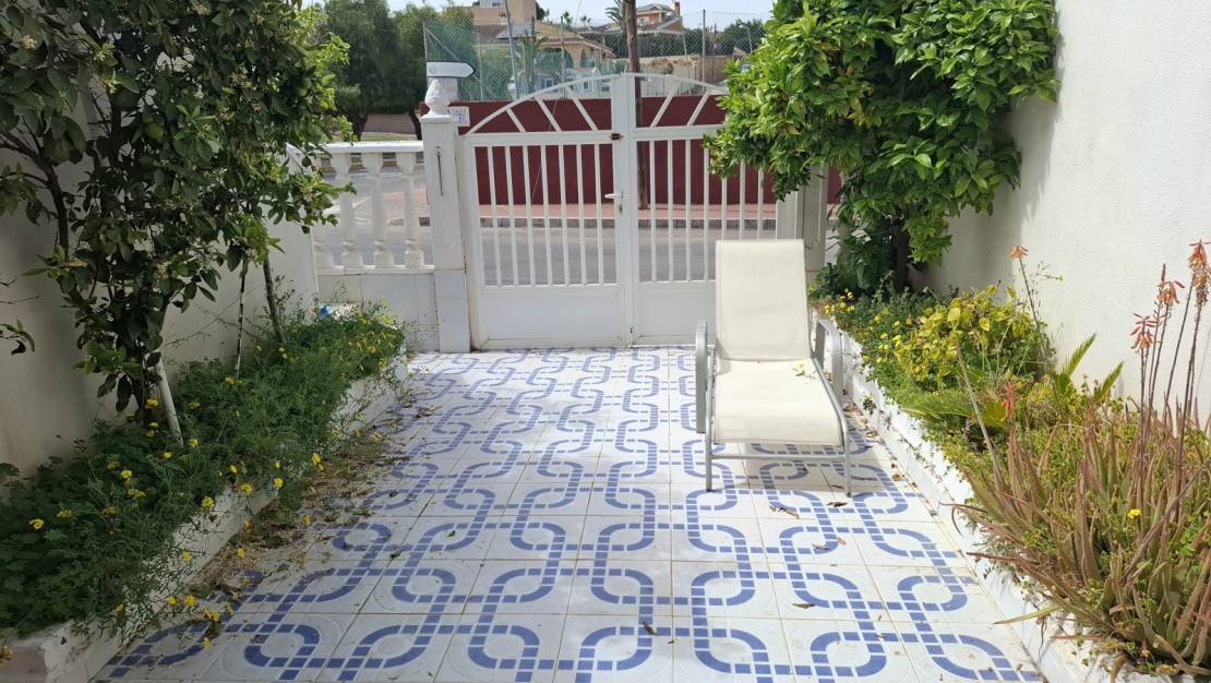 Bungalow disponible à la location longue durée à Los Balcones, l'un des quartiers résidentiels les plus établis de Torrevieja, situé à côté du club de tennis et à proximité de tous les services essentiels.