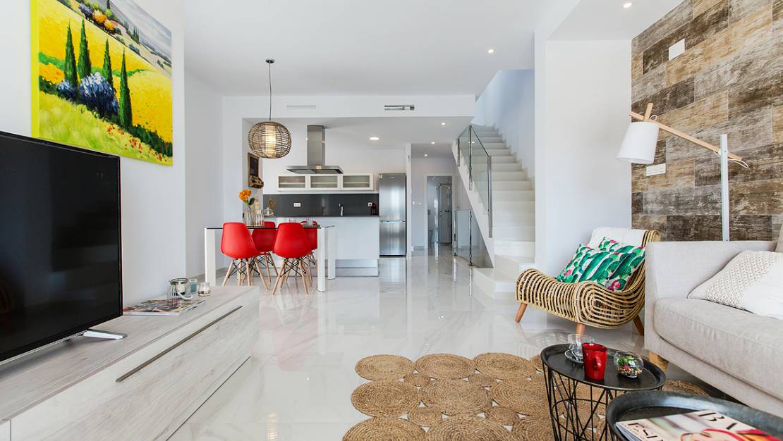Onze makelaars aan de Costa Blanca bieden u deze luxe villa met privé zwembad te koop aan in La Pedrera - Bigastro. We hebben twee huismodellen van 114 m3, met 3 slaapkamers en 3 badkamers, optionele kelder, op een perceel van 246 m2 .