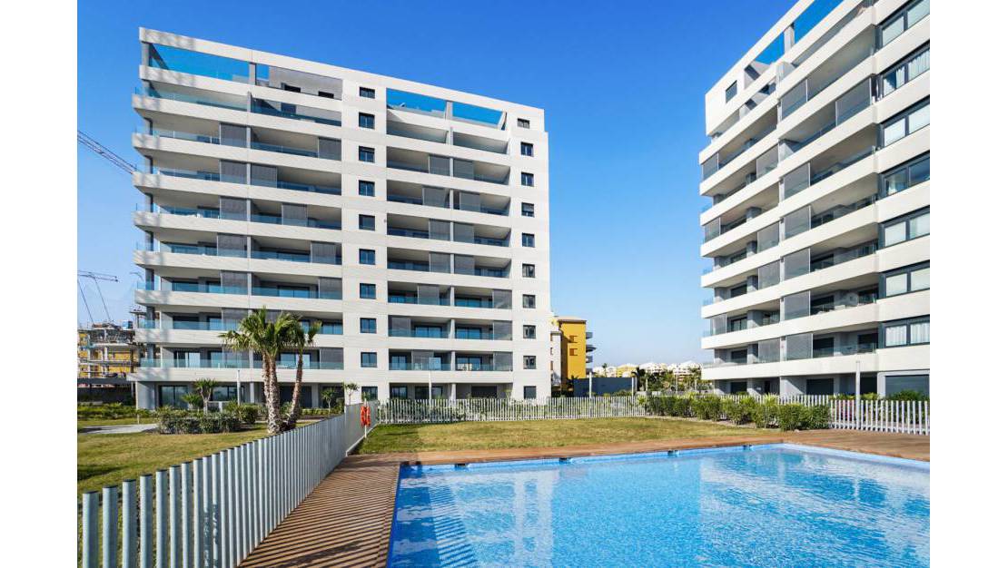 Spectacular apartment on the seafront in Punta Prima, Torrevieja. The accommodation consists of 2 bedrooms and 2 bathrooms, living room, kitchen, a large terrace of 20m2 where you can relax and enjoy the sun with spectacular frontal views of the sea. The residential has three swimming pools (one of them heated), large communal gardens, playground for children, sports court, private security and a closed circuit television system around the perimeter. The house also includes a parking space and storage room.rnrnPunta Prima is located just 5 km from Torrevieja, is characterized by good communication infrastructure and health, the proximity to the airport of Alicante. It is an urbanization at the foot of the sea, is close to all services such as Zenia Boulevard Shopping Center, Las Habaneras Shopping Center and sports centers. Walking distance to Cala Piteras, Punta Prima Beach and Playa Flamenca as well as the remaining blue flag beaches of Orihuela Costa and Torrevieja. At only 7 km we can find the golf courses of Villamartin, Campoamor, Las Ramblas, Las Colinas and Lo Romero; all of them 18 holes. Good communication with the Mediterranean motorway AP-7 and N-332.