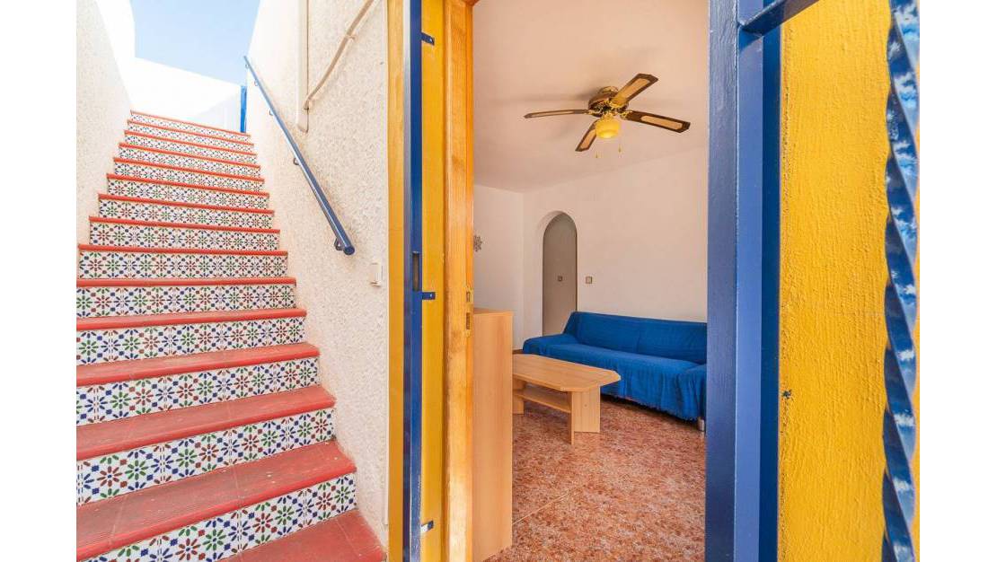 Bungalow op de bovenste verdieping in de wijk Almendros (Orihuela Costa), zeer dicht bij voorzieningen, supermarkten, winkelcentrum Via Park en ongeveer 3 km van de stranden van Orihuela Costa. Het huis is gelegen in een zeer rustige urbanisatie met een gemeenschappelijk zwembad en zeer dicht bij het nieuwe park in de omgeving, het ligt ook op het zuiden, om het hele jaar door van de zon te genieten. Het heeft 54 m2, twee ruime slaapkamers en een badkamer, aparte keuken, woonkamer met een groot balkon, perfect om het hele jaar door van het goede weer te genieten. Tevens een solarium van circa 35 m2. IBI € 127 Gemeenschap € 222 per jaar