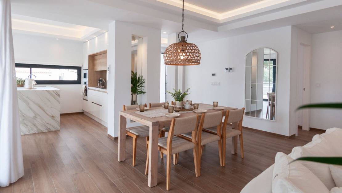Behuizing is gelijkvloers, totale bebouwde oppervlakte van 224,74 m² zijn verdeeld in woonkamer, semi-onafhankelijke keuken, 4 slaapkamers met inbouwkasten en 3 badkamers (een van hen en suite). Op hetzelfde niveau zijn er 2 terrassen (de buiten: 32 m² en de overdekte 9,37 m²) en 130 vierkante meter solarium.