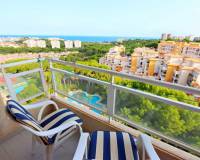 Mooi appartement op de 9e verdieping met panoramisch uitzicht op zee en oost oriëntatie in Dehesa de Campoamor. Bestaat uit 1 slaapkamer, badkamer, keuken en woon / eetkamer. Het wordt volledig gemeubileerd verkocht, A / C in de woonkamer, ingerichte keuken. Het huis is in zeer goede staat. De prijs is inclusief ondergrondse parkeergarage en berging. Residentieel met grote groene zones en parkeerplaats. Omgeven door parken en diensten. Het strand ligt op 600 meter van het appartement. Ideaal voor vakantie.