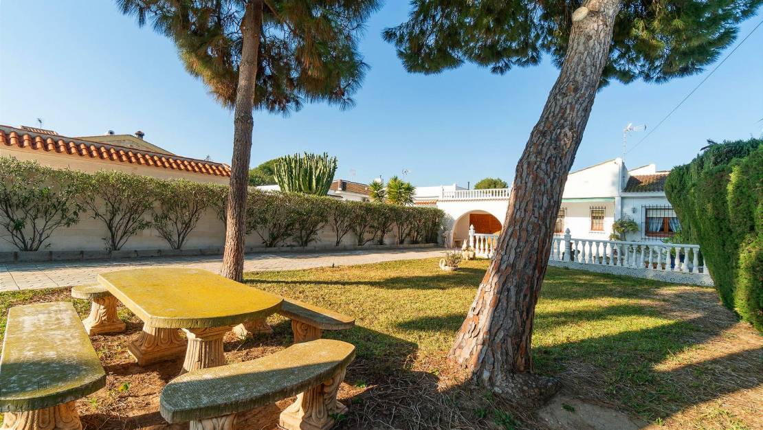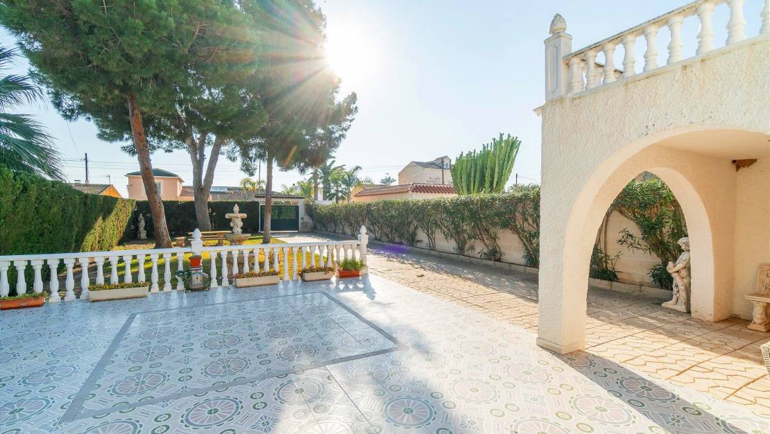 Gelegen in de rustige en gewilde wijk Los Balcones - Los Altos del Edén, biedt dit gelijkvloerse pand van 96 m² op een perceel van 537 m² grote mogelijkheden voor wie op zoek is naar een huis met mogelijkheden voor aanpassing en uitbreiding. Dit huis ligt op slechts 1,7 km van de stranden, op een bevoorrechte locatie die comfort en nabijheid van de kust combineert.. . Het huis heeft 4 slaapkamers, 2 complete badkamers en een volledig uitgeruste keuken. Het is de perfecte basis om er uw ideale thuis van te maken. Het pand is vanaf het begin zodanig ontworpen dat u het naar eigen smaak en behoefte kunt aanpassen, waarbij u optimaal gebruik kunt maken van het grote buitenoppervlak.. . Een van de sterke punten van het huis is de uitgestrekte tuin, die niet alleen een groene en privéruimte biedt, maar ook de perfecte plek biedt voor de aanleg van een privézwembad, ideaal om te genieten van de zon en het mediterrane klimaat.. . Bovendien garandeert de oostelijke ligging de hele dag door veel natuurlijk licht, terwijl de 2 grote terrassen aan weerszijden van het huis ideale plekken zijn om te ontspannen met familie en vrienden, of om te genieten van het onbelemmerde uitzicht.. . Tot de extra voorzieningen van de woning behoren onder meer airconditioning, een open haard, inbouwkasten, een automatisch irrigatiesysteem in de tuin en een berging. De woning beschikt tevens over een terras en een garage, waardoor u veel opslagruimte en parkeergelegenheid heeft.. . De omgeving is ideaal, met toegang tot bussen (halte op 3 minuten lopen), winkelcentra (Habaneras / La Zenia Boulevard), het Universitair Ziekenhuis van Torrevieja, scholen, parken en supermarkten. Bovendien maken de nabijheid van de kust, golfbanen (onder andere Villamartín en Vistabella) en andere recreatiemogelijkheden deze locatie tot een uitstekende optie om te genieten van een rustig maar actief leven.. . Mis deze unieke kans niet om een huis met veel potentieel in Torrevieja te verwerven en het huis van uw dromen te creëren!