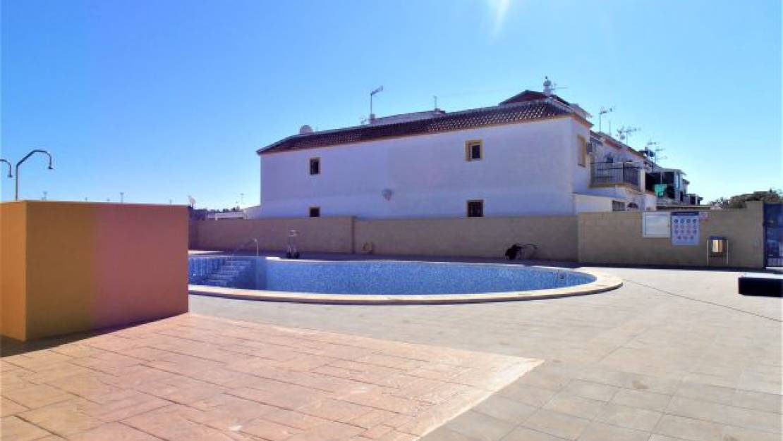 Bungalow op de bovenste verdieping, urbanisatie Jardin del Mar V, met een solarium van 75 M2. Het bestaat uit 2 tweepersoonskamers, ingebouwde kledingkast in de hoofdkamer, 1 complete badkamer met raam, woonkamer, keuken met inbouwapparatuur. Gemeenschappelijke tuin en zwembad. Dicht bij alle diensten.
