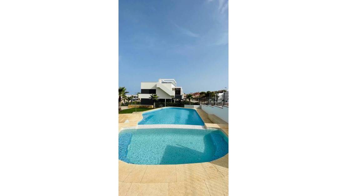 De woonwijk beschikt over een charmant zwembad en ruime groene zones, ideaal om te ontspannen en te genieten. Met twee slaapkamers en twee badkamers is deze woning ideaal voor gezinnen of mensen die op zoek zijn naar extra ruimte voor gasten.