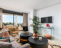 Binnen profiteren de appartementen van volledig ingerichte keukens met Siemens & Bosch-apparatuur, inbouwkasten, airconditioning, ingerichte badkamers, dubbele beglazing, versterkte veiligheidsdeur, porseleinen tegels in vloeren, intercom, kluis in de slaapkamer en grote terrassen.