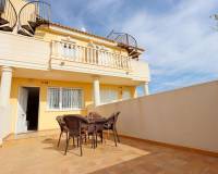 Mooie duplex op het zuiden in Lomas de Cabo Roig. Het heeft een zeer lichte woonkamer, keuken en 1 toilet op de begane grond, 2 slaapkamers (masterbedroom met een terras van 4m2) en 1 badkamer op de eerste verdieping. Tuin van ongeveer 24m2, terras 6m2, terras met kunstgras 10m2 en solarium. Directe uitgang vanaf de patio naar de gemeenschappelijke ruimtes met het zwembad en de parkeerplaats. Het verkocht gemeubileerd met toestellen. In 800m zijn winkelcentrum met supermarkt, bars, restaurants. 5 minuten met de auto CC Zenia Boulevard en Campoamor golfbaan.