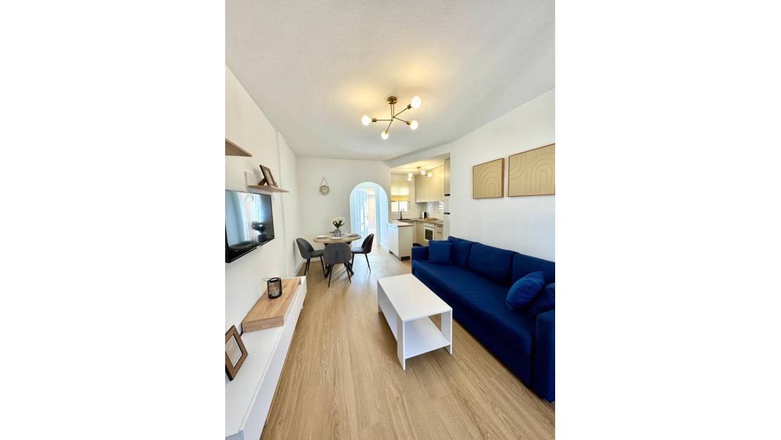 Gerenoveerd herenhuis met 2 slaapkamers en een eigen solarium in Villamartín – volledig gemeubileerd en direct te betrekken.