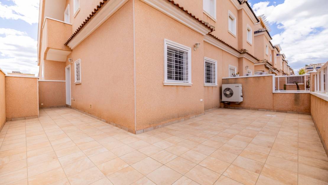 Buitenruimte is een belangrijk kenmerk. Aan de voorzijde biedt een terras van 45 m² op het noordoosten uitzicht op de gemeenschappelijke ruimtes – aangenaam en privé. Aan de achterzijde is een terras van 29,70 m² op het zuidwesten gericht, waar u kunt genieten van de middagzon en dat direct toegankelijk is vanaf Escorpiones Street. Dit maakt de woning ook bijzonder geschikt voor zelfstandig gebruik of verhuur.