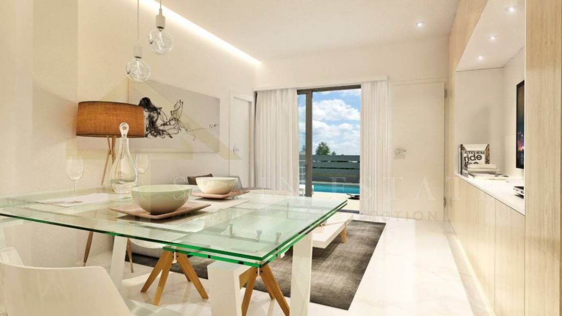 Husene er tre soverom og tre bad, ett-roms suite med garderobe, ett dobbelt med garderobe i første etasje og et annet soverom med bad i første etasje med direkte tilgang til solarium. Skapene har trefor, mykt lukkerutstyr og interiørbelysning. Kjøkkenet har en to-nivå øy, vask og avløp. Fullt utstyrt kjøkken som inkluderer øvre og nedre enheter med mykt lukkerutstyr. Apparater av topp kvalitet med A + energieffektivitet. Alle badene er fullt utstyrt med forfengelighet, speil, belysning, dusjbrett og tilbehør.