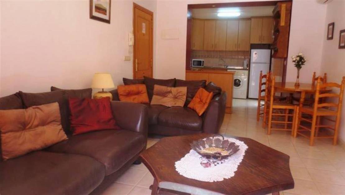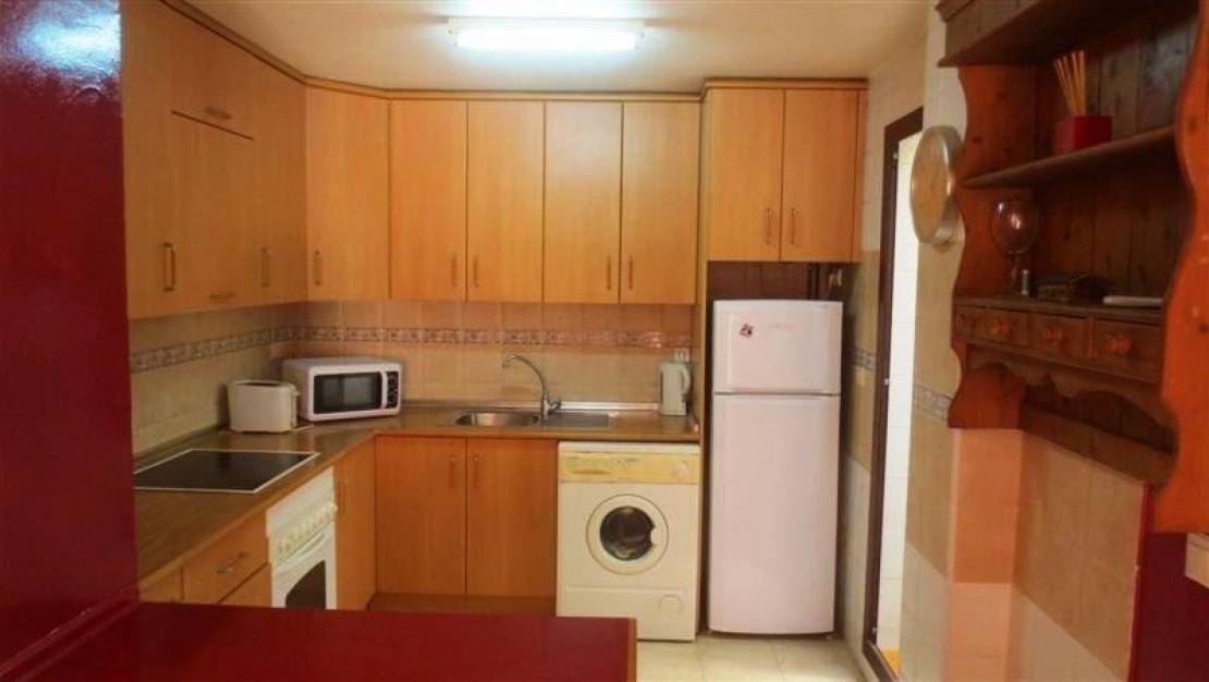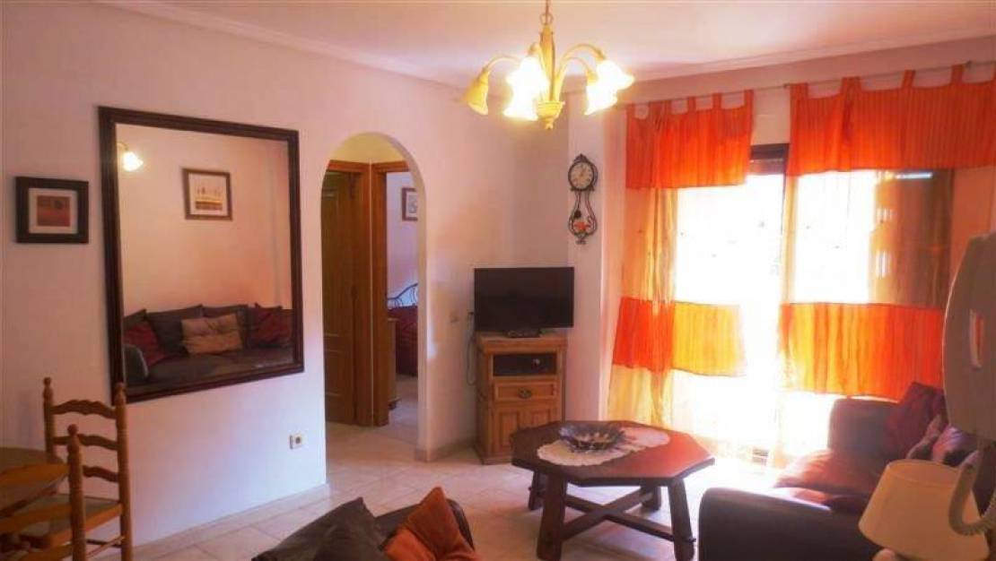 Utmerket leilighet i 2. linje Los Locos-stranden i første etasje med utsikt over bassengområdet i det vakre boligområdet La Dama. Den består av 2 soverom, pluss et ekstra med servant, delvis utnytter det lukkede galleriet, utstyrt amerikansk kjøkken, komplett bad, air condition i stuen, hjørne terrasse med utsikt over fellesbassenget. Sør orientering, fullt møblert og utstyrt i henhold til inventar. Fellesskap og grønne områder. Bare noen få meter fra stranden. I nærheten av alle tjenester, restaurantbarer, supermarkeder og butikker. Skatt IBI € 300 / år.