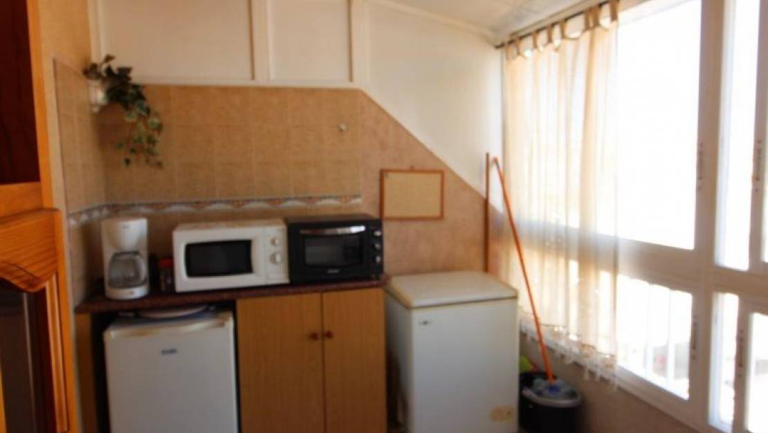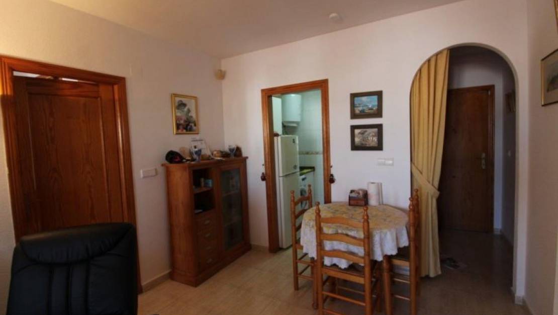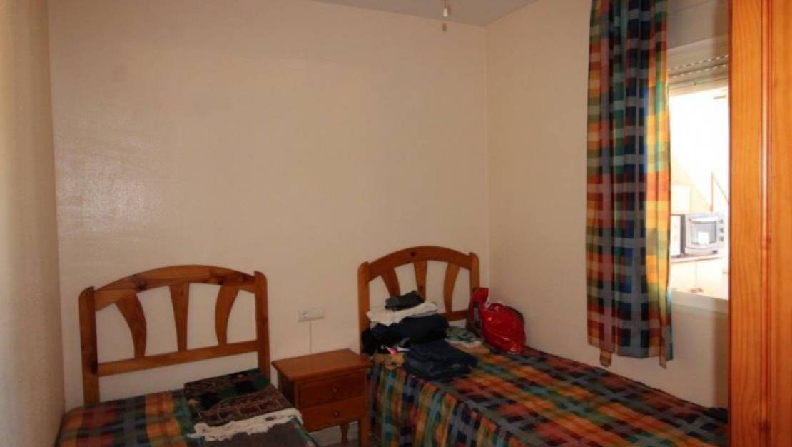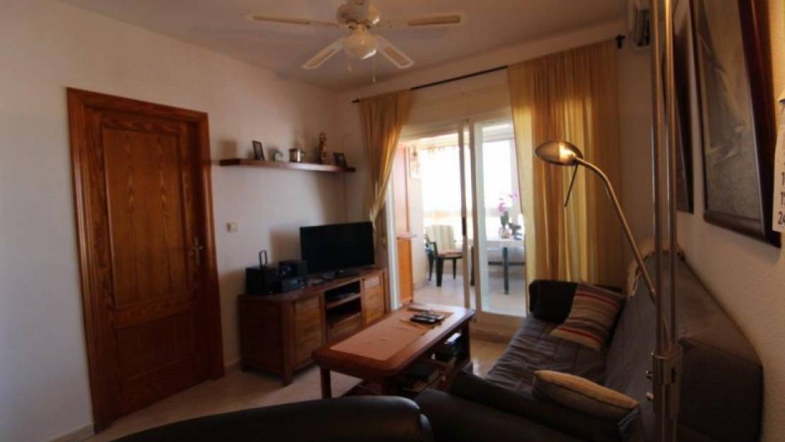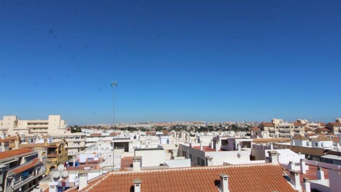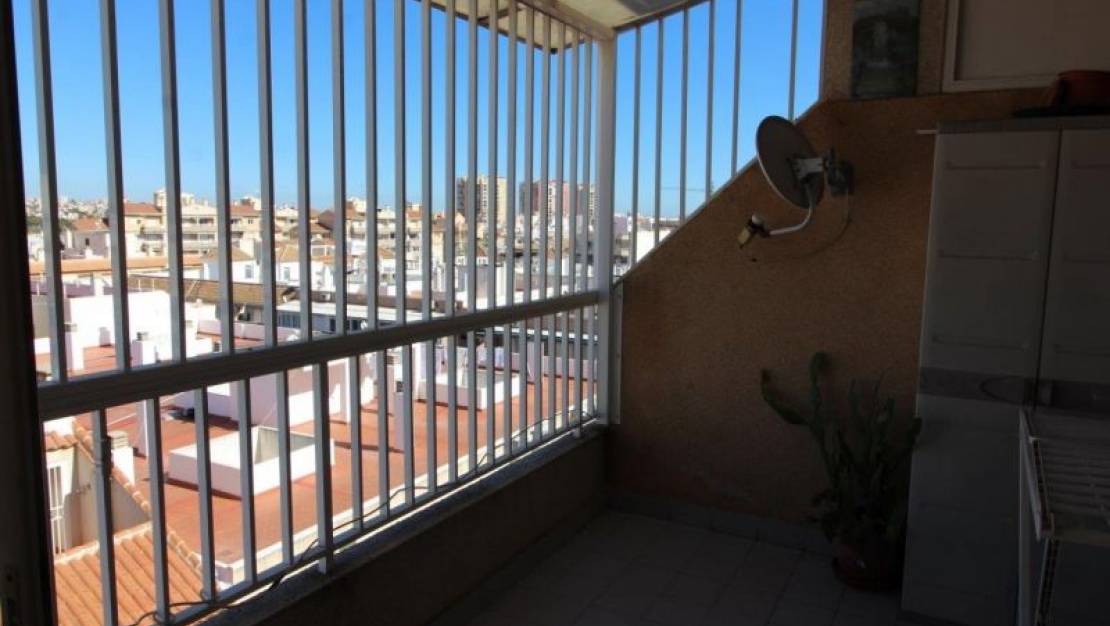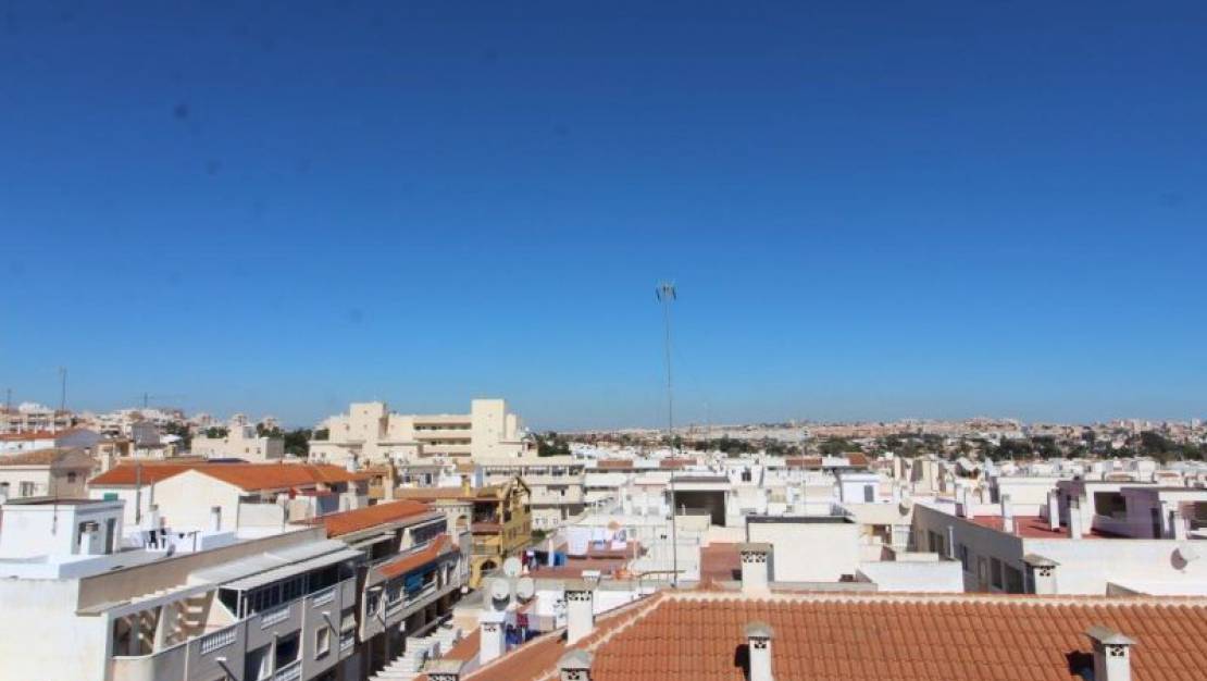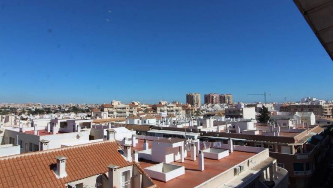 Fin topp etasje leilighet til salgs i Torrevieja. Leiligheten består av to soverom, stue, et lite kjøekken, 1 bad og en stor inglassert veranda på 20m2. På taket har du en felles takterasse/solarium du kan benytte deg av.