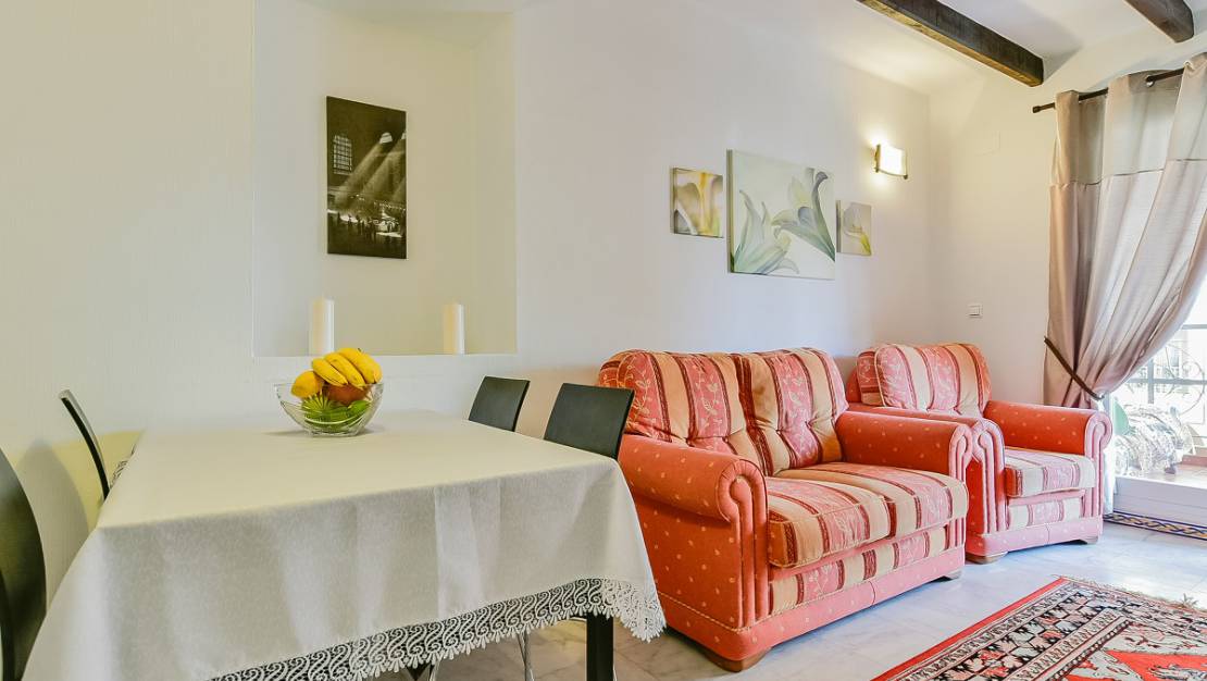 Leiligheten ligger i andre etasje i et lukket luksuriøst boligbygg med felles fritidsområde og basseng. Dette er et kjent og prestisjefylt kompleks kalt Las Atalayas, like foran Aldea del Mar-distriktet.